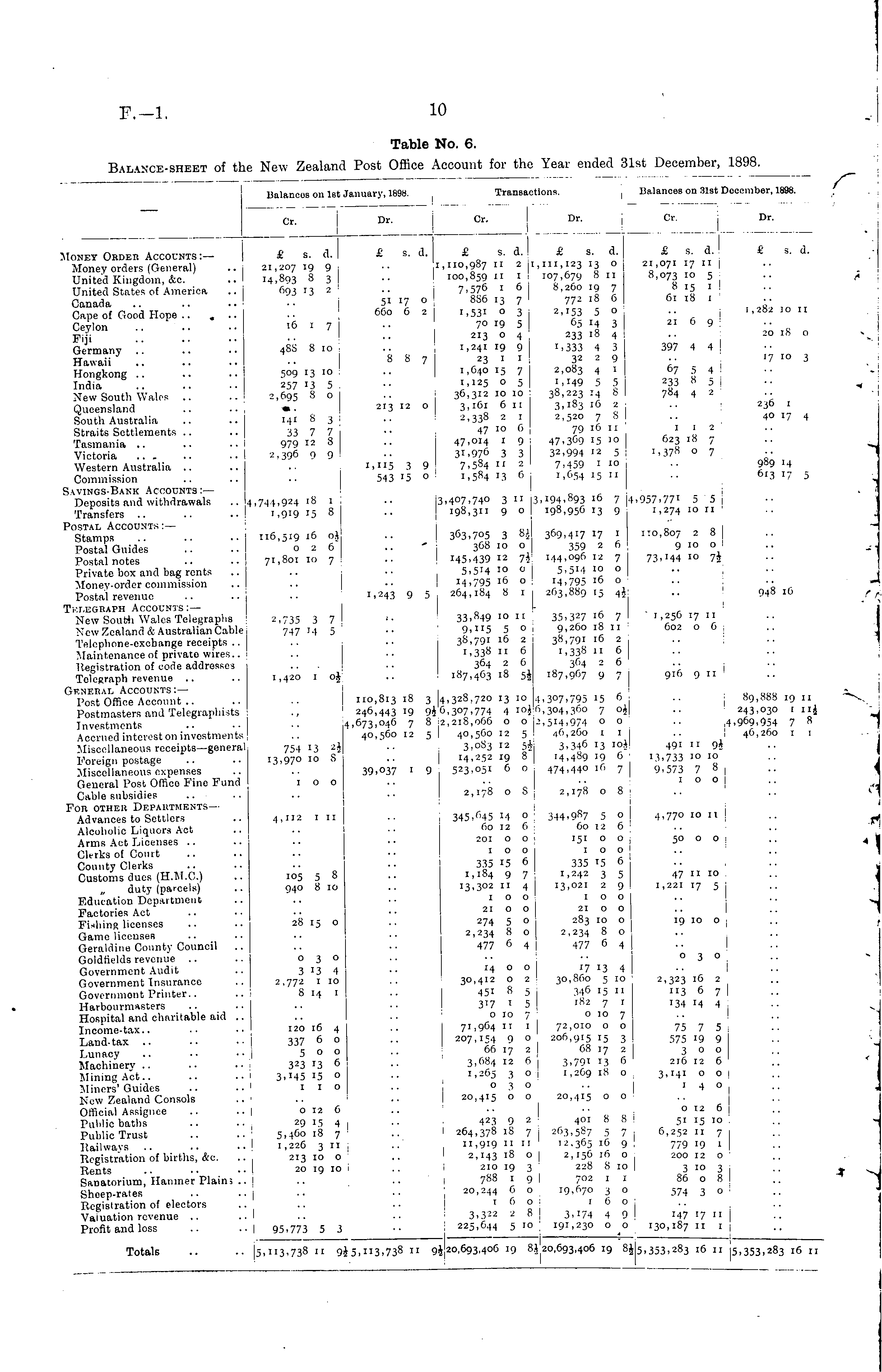 Table No. 6. Balance-sheet of the New Zealand Post Office Account for the Year ended 31st December, 1898.