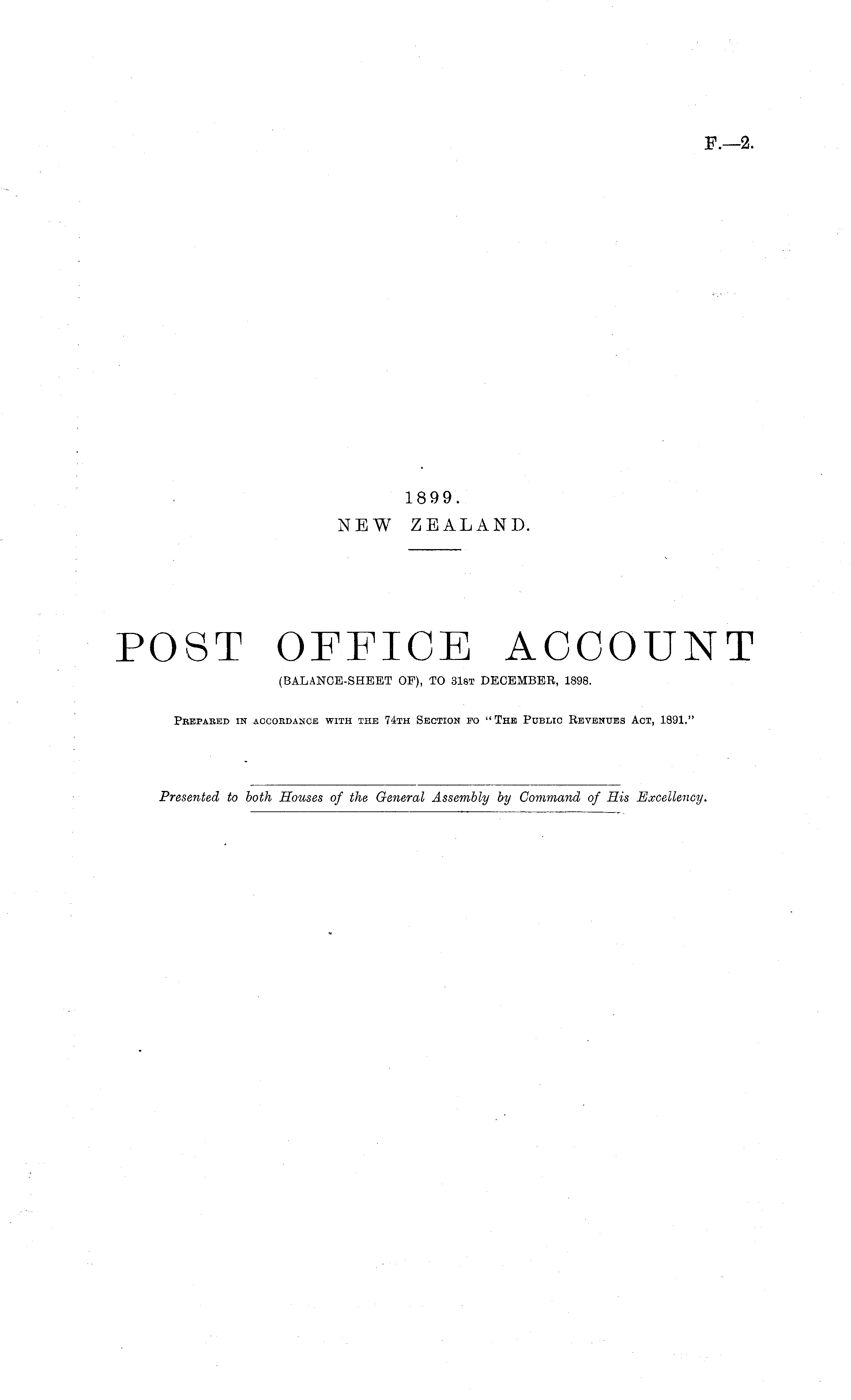 POST OFFICE ACCOUNT (BALANCE-SHEET OF), TO 31st DECEMBER, 1898. Prepared in accordance with the 74th Section fo "The Public Revenues Act, 1891."