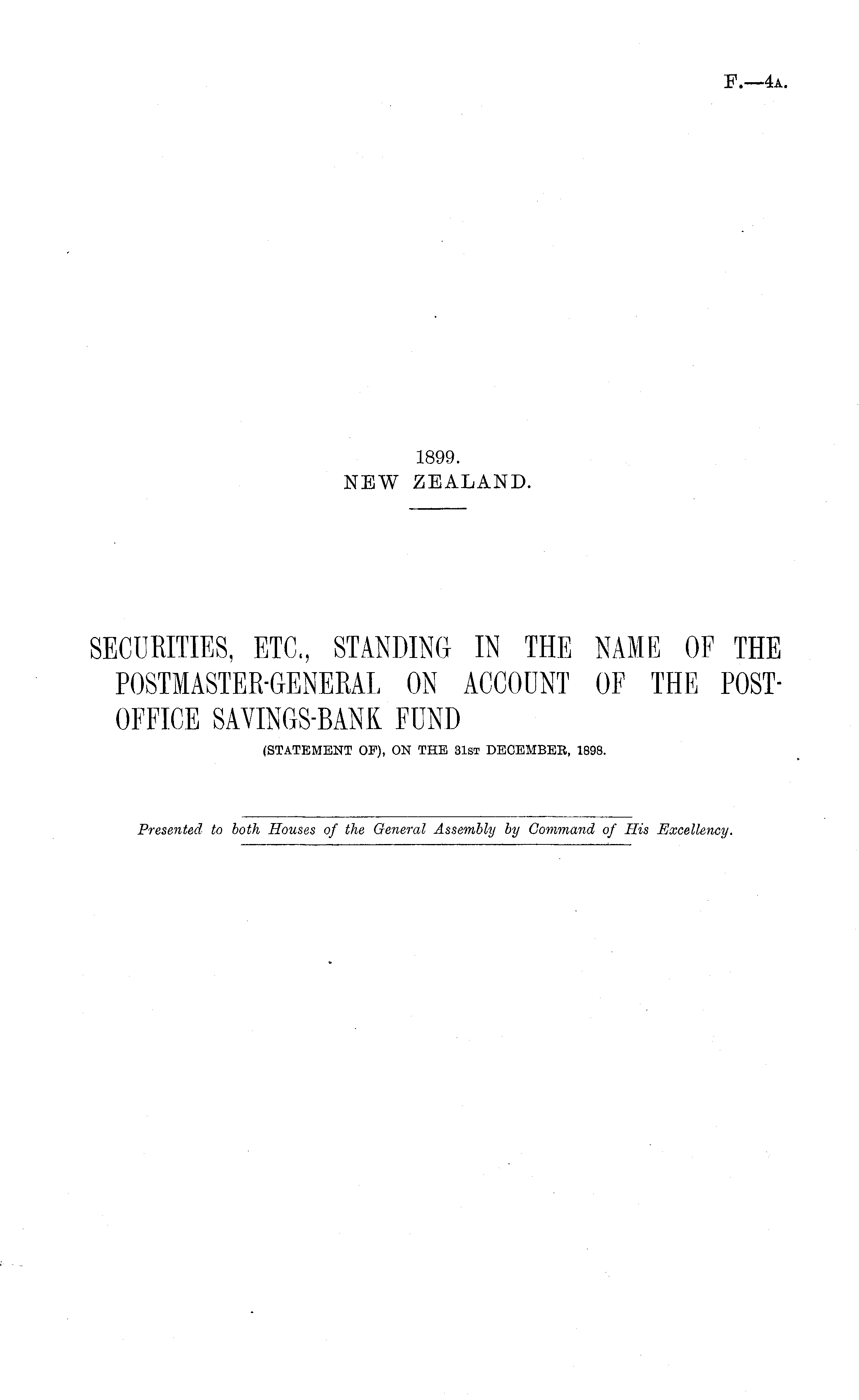 SECURITIES, ETC., STANDING IN THE NAME OF THE POSTMASTER-GENERAL ON ACCOUNT OF THE POSTOFFICE SAVINGS-BANK FUND (STATEMENT OF), ON THE 31st DECEMBER, 1898.
