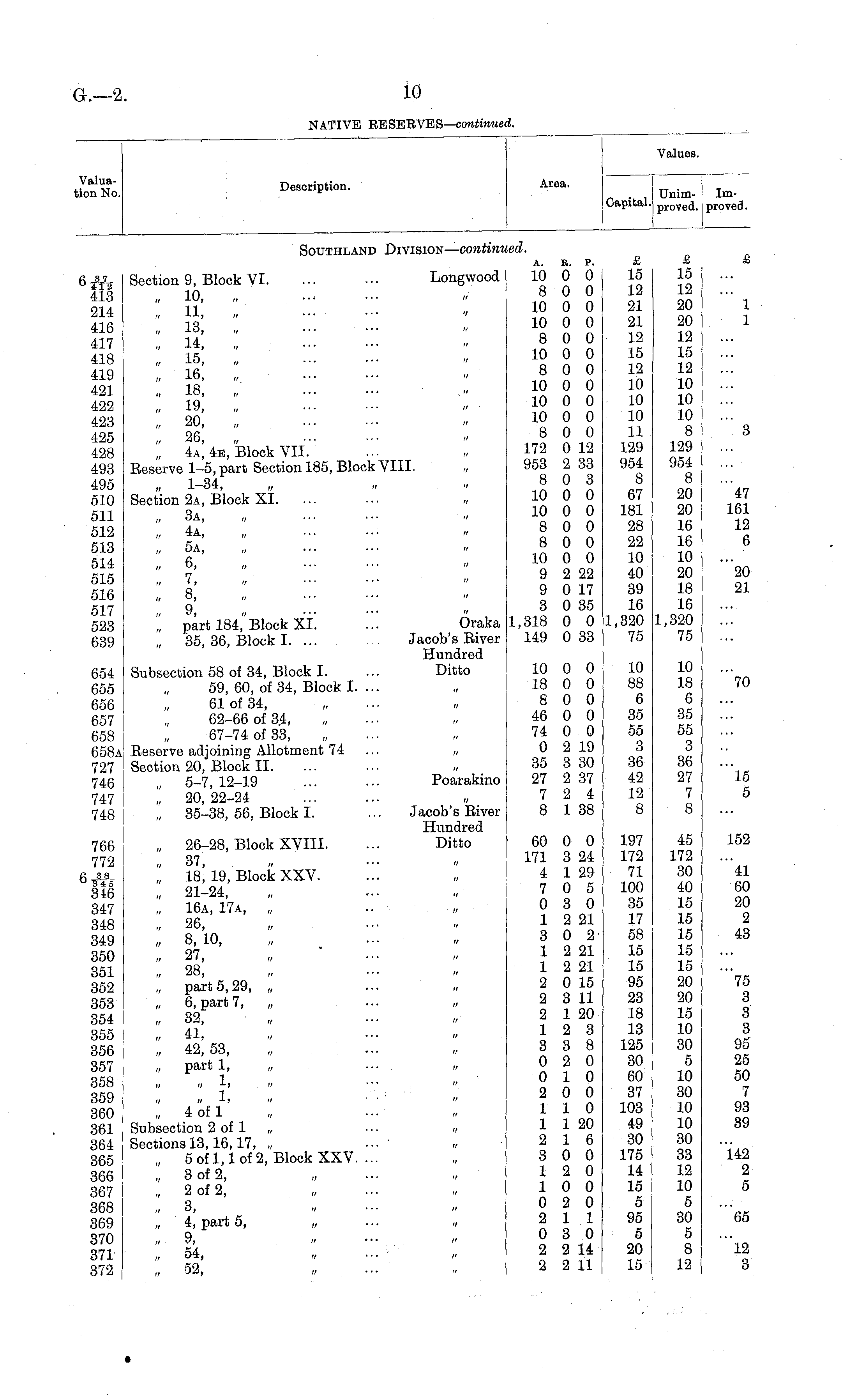 Valua;ion No. Description. Area. Values. ., ... Unim- ImOapital. p rove d. proved. Values. Southland Division — contin't <,ed. A. 10 8 10 10 8 10 8 10 10 10 8 172 953 8 10 10 8 8 10 9 9 3 1,318 149 E. P. 0 0 0 0 0 0 0 0 0 0 0 0 0 0 0 0 0 0 0 0 0 0 0 12 2 33 0 3 0 0 0 0 0 0 0 0 0 0 2 22 0 17 0 35 0 0 0 33 £ 15 12 21 21 12 15 12 10 10 10 11 129 954 8 67 181 28 22 10 40 39 16 1,320 75 £ 15 12 20 20 12 15 12 10 10 10 8 129 954 8 20 20 16 16 10 20 18 16 1,320 75 £ ft 37 413 214 416 417 418 419 421 422 423 425 428 493 495 510 511 512 513 514 515 516 517 523 639 654 655 656 657 658 658a 727 746 747 748 Section 9, Block VI. ... ... Longwood „ 10, „ » 11, , „ 13, „ „ 14, „ „ 15, „ i 16, „ „ is, ; „ 19, „ „ 20, „ „ 26, „ „ 4a, 4b, Block yil. Reserve 1-5, part Section 185, Block VIII. „ 1-34, Section 2a, Block XI. 3a, 4a, „ 5a, „ ... ••■ n „ 6, „ „ 7, ., „ 8, „ „ 9, „ „ part 184, Block XI. ... Oraka 35, 36, Block I. ... ... Jacob's River Hundred Subsection 58 of 34, Block I. ... Ditto 59, 60, of 34, Block I. ... 61 of 34, 62-66 of 3.4, 67-74 of 33, Reserve adjoining Allotment 74 ... „ Section 20, Block II. 5-7, 12-19 ... ... Poarakino ,; 20, 22-24 35-38, 56, Block I. ... Jacob's River Hundred „ 26-28, Block XVIII. ... Ditto „ 37, „ 18, 19, Block XXV. „ 21-24, 16a, 17a, „ „ 26, „ 8, 10, „ 27, „ 28, part 5, 29, „ „ 6, part 7, „ •■• » „ 32, 41, „ .-■ n „ 42,53, „ part 1, „ ••• ii n 1, // ,/ 1, n ■ • " „ 4ofl Subsection 2 of 1 „ • ■ • „ Sections 13,16,17, „ ■•• „ 5 of 1,1 of 2, Block XXV. ... 3 of 2, „ 2 of 2, „ 3, 4, part 5, ,,9, n ■■■ " „ 54, „ -52, „ ... a 10 18 8 46 74 0 35 27 7 8 0 0 0 0 0 0 0 0 0 0 2 19 3 30 2 37 2 4 1 38 10 88 6 35 55 3 36 42 12 8 10 18 6 35 55 3 36 27 7 8 1 1 3 47 161 12 6 "20 21 "70 "l5 5 766 772 R 38 316 347 348 349 350 351 352 353 354 355 356 357 358 359 360 361 364 365 366 367 368 369 370 371 372 60 171 4 7 0 1 3 1 1 2 2 2 1 3 0 0 2 1 1 2 3 1 1 0 2 0 2 2 0 0 3 24 1 29 0 5 3 0 2 21 0 2 2 21 2 21 0 15 3 11 1 20 2 3 3 8 2 0 1 0 0 0 1 0 1 20 1 6 0 0 2 0 0 0 2 0 1 1 3 0 2 14 2 11 197 172 71 100 35 17 58 15 15 95 23 18 13 125 30 60 37 103 49 30 175 14 15 5 95 5 20 15 45 172 30 40 15 15 15 15 15 20 20 15 10 30 5 10 30 10 10 30 33 12 10 5 30 5 8 12 152 41 60 20 2 43 75 3 3 3 95 25 50 7 93 39 142 2 5 "65 "l2 3