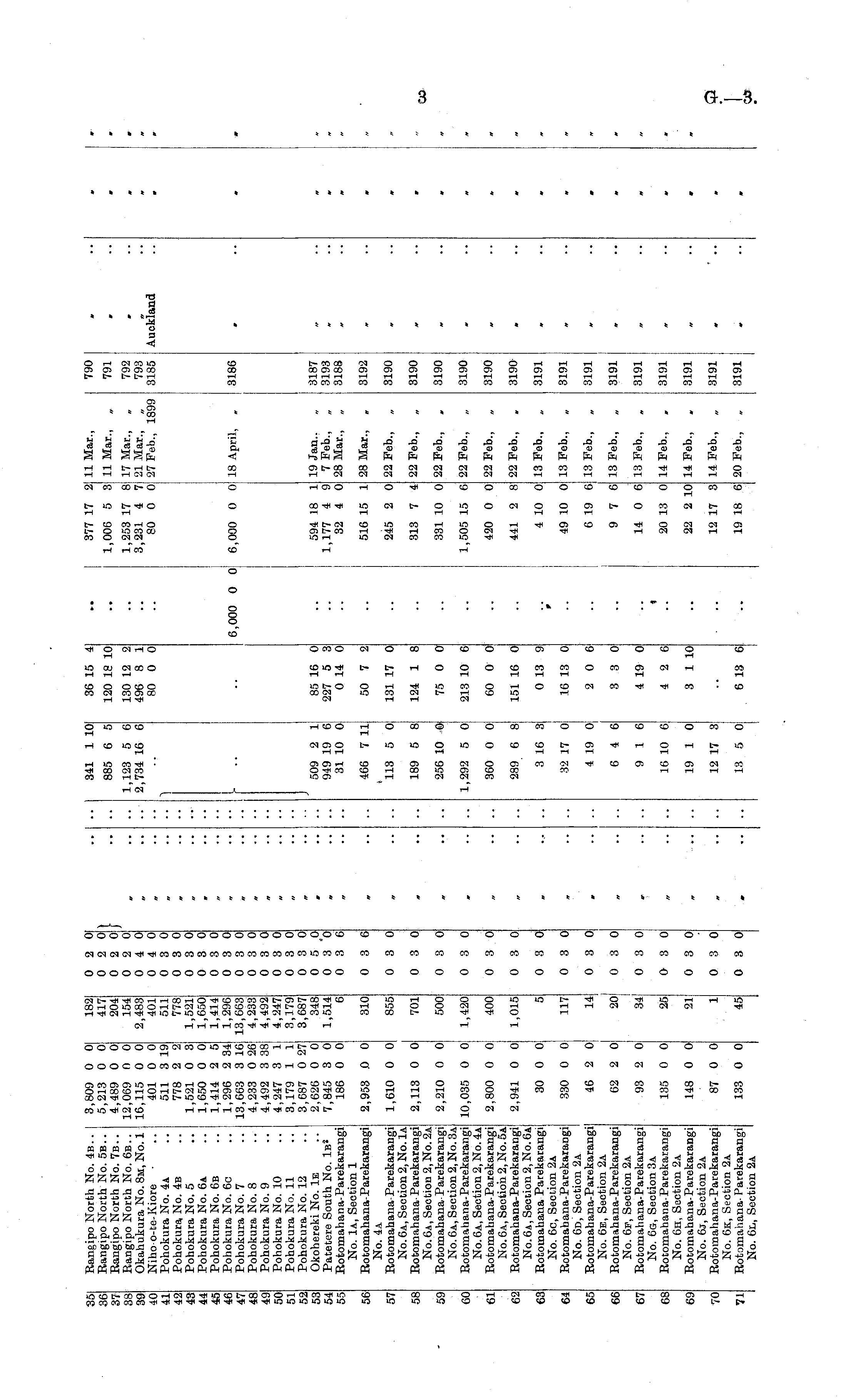 35 36 37 38 39 40 41 42 43 44 45 46 47 48 49 50 51 52 53 54 55 56 57 58 Rangipo North No. 4b. . I Rangipo North No. 5b. . Rangipo North No. 7b. . Rangipo North No. 6b.. Okahukura No. 8m, No. 1 Niho o-te-Kiore Pohokura No. 4a Pohokura, No. 4b Pohokura No. 5 Pohokura No. 6a Pohokura No. 6b Pohokura No. 6c Pohokura No. 7 Pohokura No. 8 Pohokura No. 9 Pohokura No. 10 Pohokura No. 11 Pohokura No. 12 Okohereki No. 1e Patetere South No. Iβ 3 Rotomah an a- Parekarangi No. Iα, Section 1 Rotomahana-Parekarangi No. 4a Rotomahana-Parekarangi No. 6a, Section 2, No. Iα Rotomahana- Parekarangi No. 6a, Section 2,No. 2a Rotomahana Parekarangi No. 6a, Section 2, No. 3a Rotomahana-Parekarangi No. 6a, Section 2, No. 4a Botomahana- Parekarangi No. 6a, Section 2, No. 5a Rotomahana-Parekarangi No. 6a, Section 2, No. 6a Rotomahana Parekarangi No. 6c, Section 2a Rotomahana-Parekarangi No. 6d, Section 2a Rotomahana-Parekarangi No. 6e, Section 2a Rotomahana-Parekarangi No. 6f, Section 2a Rotomahana-Parekarangi No. 6g, Section 3a Rotomahana-Parekarangi No. 6h, Section 2a Rotomaha,na-Parekarangi No. 6j, Section 2a Rotomahana-Parekarangi No. 6k, Section 2a Rotomahana- Parekarangi No. 6l, Section 2a 3,809 0 0 5,213 0 0 4,489 0 0 12,069 0 0 16,115 0 0 401 0 0 511 3 19 778 2 2 1,521 0 3 1,650 0 0 1,414 2 5 1,296 2 34 13,663 3 16 4,233 0 26 4,492 3 38 4,247 3 1 3,179 1 1 3,687 0 27 2,626 0 0 7,845 3 0 186 0 0 2,953 0 0 1,610 0 0 2,113 0 0 417 204 154 2,483 401 511 778 1,521 1,650 1,414 1,296 13,663 4,233 4,492 4,247 3,179 3,687 348 1,514 6 310 855 701 0 2 0 0 2 0 0 2 0 0 2 0 0 4 0 0 4 0 0 3 0 0 3 0 0 3 0 0 3 0 0 3 0 0 3 0 0 3 0 0 3 0 0 3 0 0 3 0 0 3 0 0 3 0 0 5 0 0 3 *0 0 3 6 o 3 a 0 3 0 0 3 0 ( w n m 509 2 1 949 19 6 31 10 0 466 7 11 113 5 0 189 5 8 341 1 10! 885 6 5 ,123 5 6 ,734 16 6 ■• 36 15 4 120 18 10 130 12 2 496 8 1 80 0 0 85 16 0 227 5 3 0 14 0 50 7 2 131 17 0 124 1 8 »• 6,000 0 0 377 17 2 1,006 5 3 1,253 17 8 3,231 4 7 80 0 0 6,000 0 0 594 18 1 1,177 4 9 32 4 0 516 15 1 245 2 0 313 7 4 11 Mar., 11 Mar., . 17 Mar., . 21 Mar., „ 27 Feb., 1899 18 April, , 19 Jan.. 7 Feb., 28 Mar., 28 Mar., 22 Feb., 22 Feb., n 791 792 793 3185 3186 3187 3193 3188 3192 3190 3190 W m m Auckland m rr ff * f m n n> * • m 59 2,210 0 0 500 0 3 0 it 256 10 0 75 0 0 331 10 0 22 Feb., 3190 60 10,035 0 0 1,420 0 3 0 1,292 5 0 213 10 6 1,505 15 6 22 Feb., 3190 61 2,800 0 0 400 0 3 0 360 0 0j 60 0 0 420 0 0 22 Feb., 3190 tr 62 2,941 0 0 1,015 0 3 0 289 6 8! 151 16 0 441 2 8 22 Feb., 3190 » H 63 30 0 0 5 0 3 ffl 3 16 3J 0 13 9 V 4 10 0 13 Feb., 3191 64 330 0 0 117 0 3 0 32 17 0 16 13 0 49 10 0 13 Feb., 3191 n • 65 46 2 0 14 0 3 oj m 4 19 o| 2 0 6 6 19 6 i 13 Feb., 3191 # * 66 62 2 0! 2oj 0 3 0 6 4 6 3 3 0 9 7 6 13 Feb., 3191 It 67 93 2 0 34 0 3 0 9 16 4 19 0 14 0 6 13 Feb., 3191 it * 68 135 0 0 25 0 3 0 16 10 6 4 2 6 < 20 13 0 14 Feb., 3191 * 69 148 0 0 21 0 3 0 19 1 0 3 1 10 22 2 10 14 Feb., m 3191 * 70 87 0 0 1 0 3 0 12 17 3 12 17 3 14 Feb., 3191 it * 71 133 0 0 45 0 3 0 13 5 0 6 13 6 19 18 6 20 Feb., 3191 * *