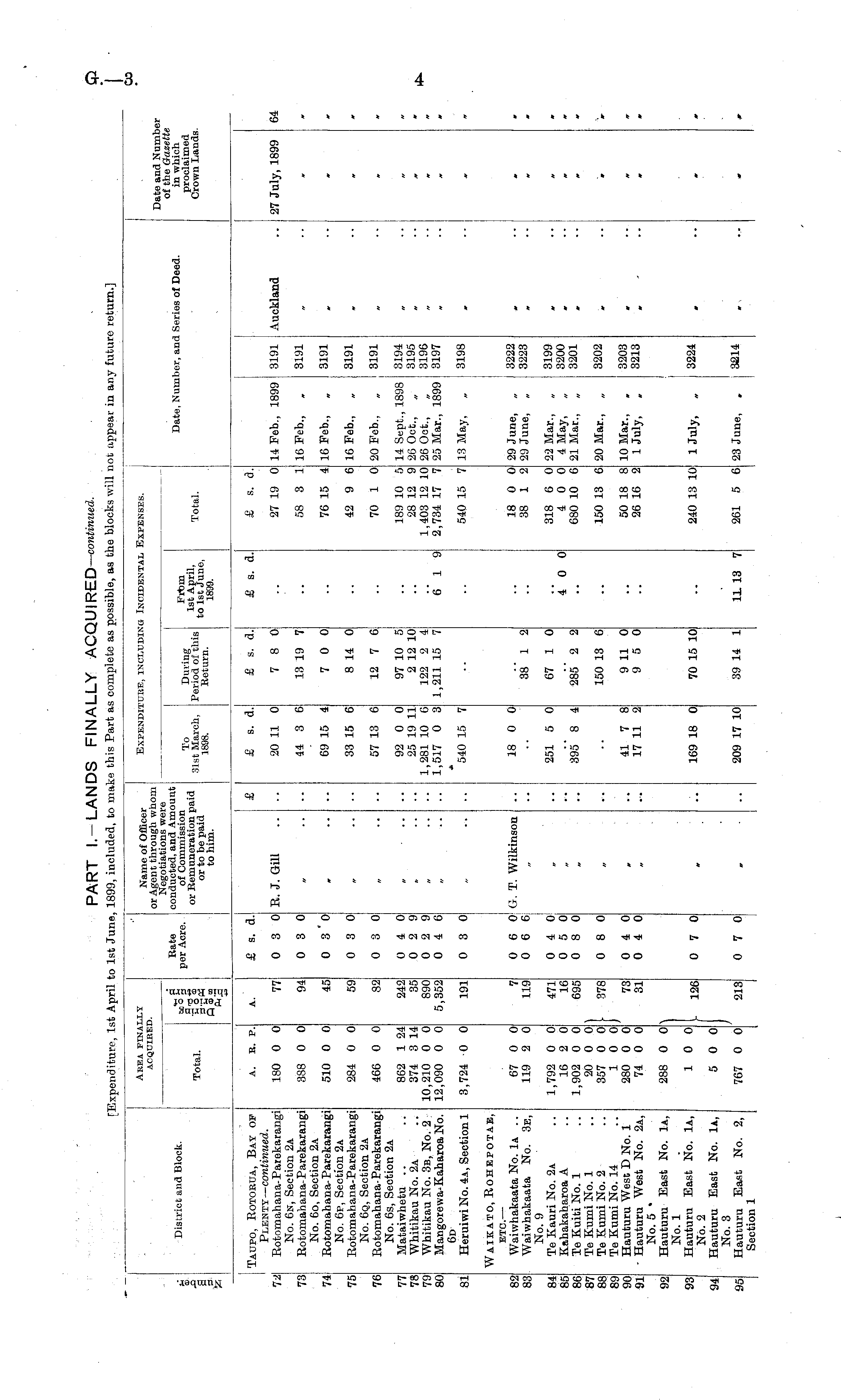 PART I.-LANDS FINALLY ACQUIRED-continued. [Expenditure, 1st April to 1st June, 1899, included, to make this Part as complete as possible, as the blocks will not appear in any future return.]