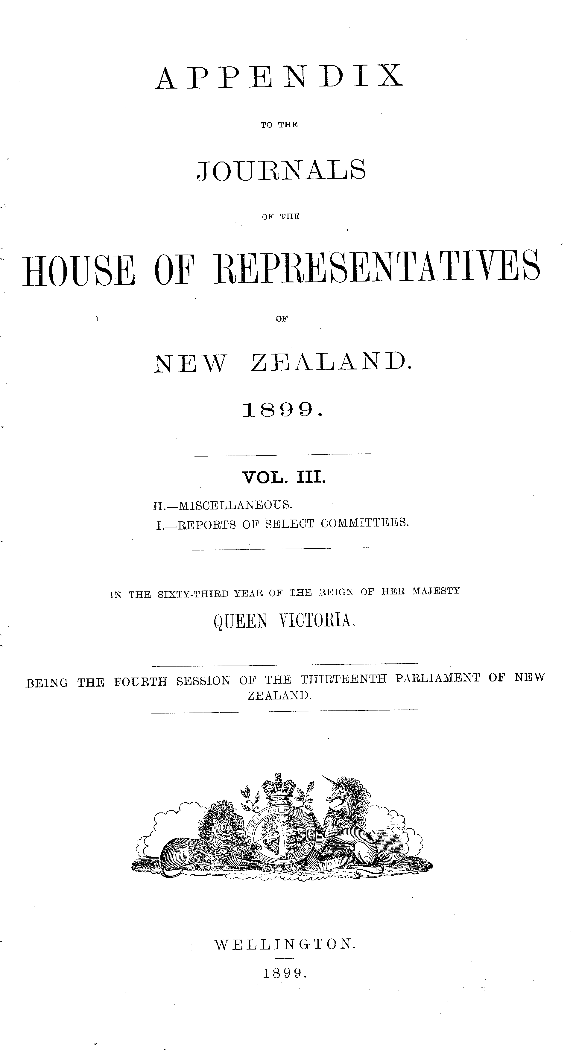 APPENDIX TO THE JOURNALS OF THE HOUSE OF REPRESENTATIVES OF NEW ZEALAND. 1899.