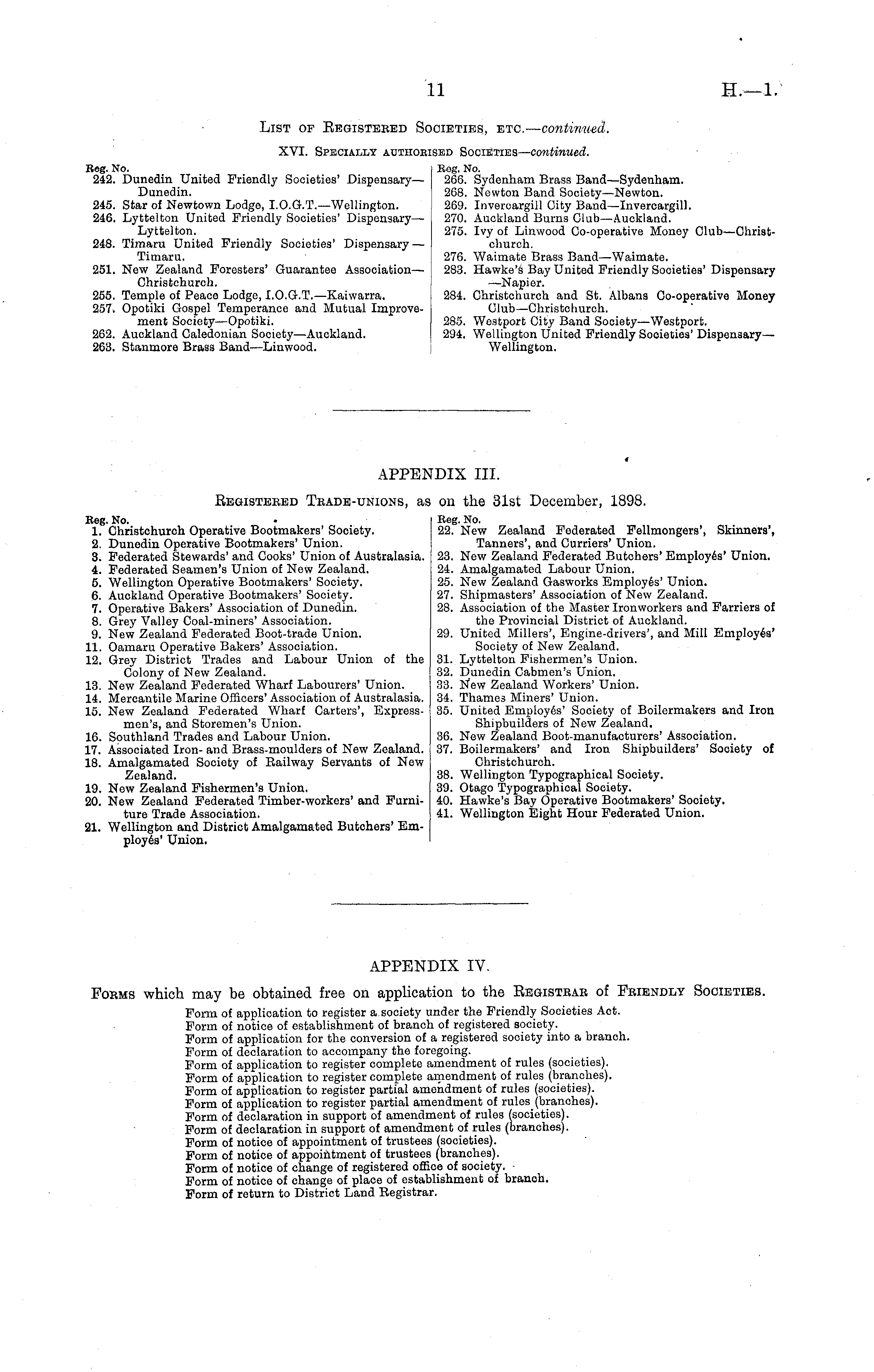 APPENDIX IV. Forms which may be obtained free on application to the Eegisteae of Feiendly Societies. Form of application to register a society under the Friendly Societies Act. Form of notice of establishment of branch of registered society. Form of application for the conversion of a registered society into a branch. Form of declaration to accompany the foregoing. Form of application to register complete amendment of rules (societies). Form of application to register complete amendment of rules (branches). Form of application to register partial amendment of rules (societies). Form of application to register partial amendment of rules_ (branches). Form of declaration in support of amendment of rules (societies). Form of declaration in support of amendment of rules (branches). Form of notice of appointment of trustees (societies). Form of notice of appointment of trustees (branches). Form of notice of change of registered office of society. Form of notice of change of place of establishment of branch. Form of return to District Land Registrar.