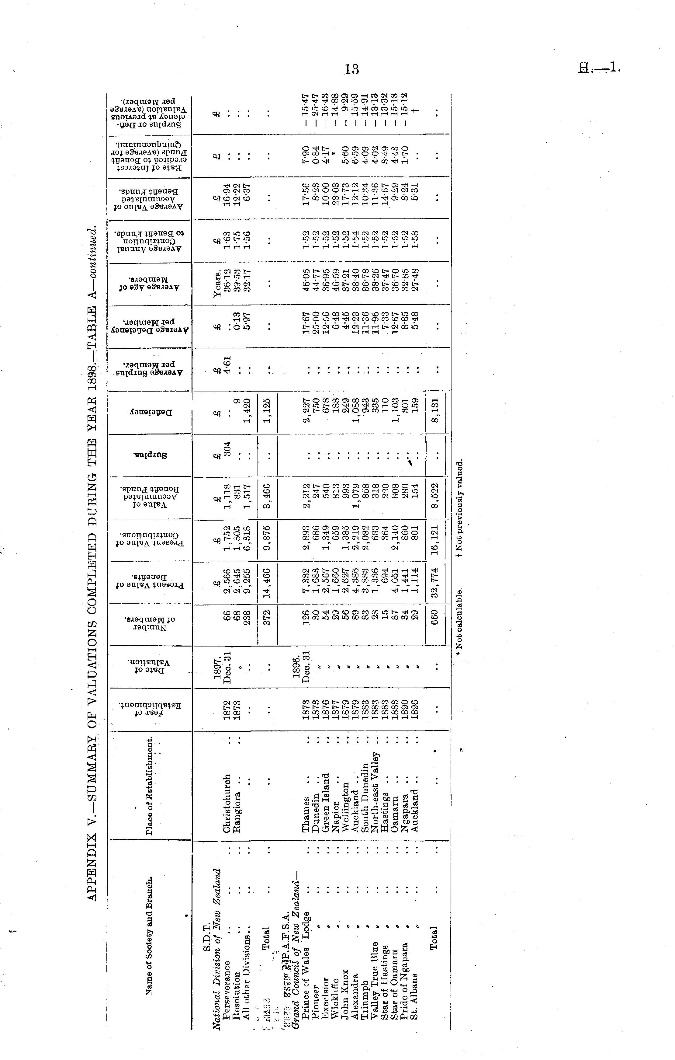 Name of Society and Branch. Place of Establishment. 3 © H a o.2 P =3 CO U © o o © += a 3 © © © 3 3 o © o Oca ©-3^ -J 3ca > g 3 J, © 3 I © c3 © £a si. ■< o •a a © 2 ©3 cd © © ■< o © m ©a toa ©(^ 3-2 3 to "S 3 h 3 © o "3.2 3 i> afe <= as © ~i © ©GQ-* O-rt H i. |»ga "gS-g a 0 3 a o ft" a K £3Q> do .8 3 8.D.T. National Division of New Zealand — Perseverance Resolution All other Divisions.. Christchurch Rangiora 1872 1873 1897. Deo. 31 66 68 238 £ 2,566 2,645 9,255 £ 1,752 1,805 6,318 £ 1,118 831 1,517 £ 304 £ £ 4-61 £ 013 5-97 Years. 8612 39-53 32-17 £ 1-63 1-75 1-56 £ 16-94 12-22 6-37 £ £ 9 1,420 fj)0&8.3 Total Grand Council of New Zealand — Prince of Wales Lodge Pioneer „ Excelsior „ Wickliffe John Knox „ Alexandra „ Triumpb Valley True Blue „ Star of Hastings Star of Oamaru „ Pride of Ngapara St. Albans „ ... 372 14,466 9,875 3,466 1,125 Thames Dunedin .. Green Island Napier Wellington Auckland South Dunedin North-east Valley .. Hastings Oamaru Ngapara Auckland .. 1873 1873 1876 1877 1879 1879 1883 1883 1883 1883 1890 1896 1896. Dec. 31 17-67 25-00 12-56 6-48 4-45 12-23 11-36 11-96 7-33 12-67 8-85 5-48 46-05 44-77 36-95 46-59 37-21 38-40 36-78 38-25 37-47 36-70 32-85 27-48 1-52 1-52 1-52 1-52 1-52 1-54 1-52 1-52 1-52 1-52 1-52 1-58 17-56 8-23 1000 28 03 17-73 12-12 1034 11-36 14-67 9-29 8-24 5-31 7-90 0-84 417 * - 15-4' - 25-4' - 16-4! - 14-8i - 9-2! - 15-5! - 14-93 - 13 li - 13-3! - 15-li - 15 1! t 126 30 54 29 56 89 83 28 15 87 34 29 7,332 1,683 2,567 1,660 2,627 4,386 3,883 1,336 694 4,051 1,441 1,114 2,893 686 1,349 659 1,385 2,219 2,082 683 364 2,140 860 801 2,212 247 540 813 993 1,079 858 318 220 808 280 154 2,227 750 678 188 249 1,088 943 335 110 1,103 301 159 5-60 6-59 4-09 4-02 349 4-43 1-70 ->■* * Total 660 32,774 16,121 8,522 8,131 * Not calculable. + Not preiously valued.