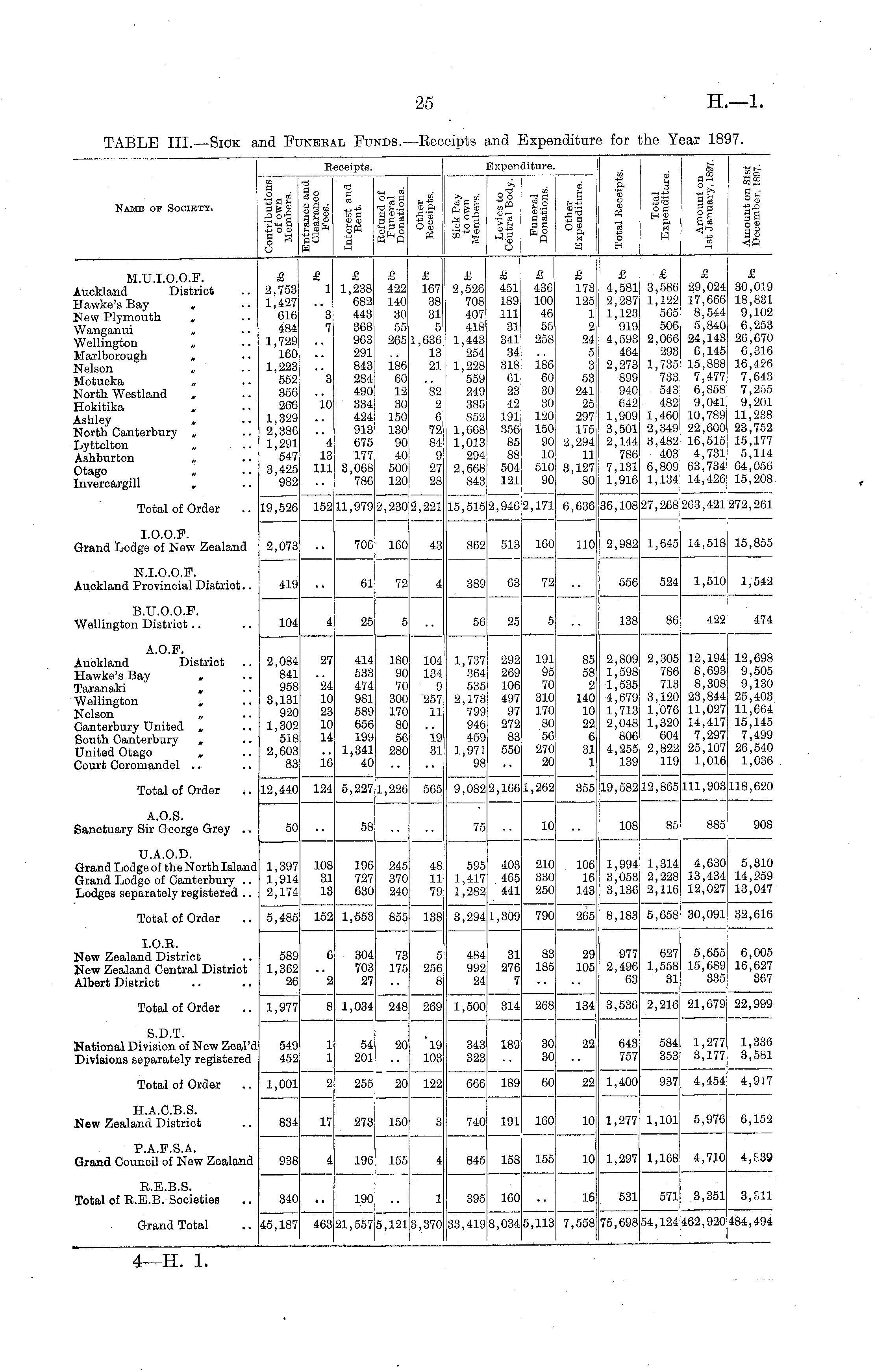 TABLE III.—Sick and Funeral Funds.—Receipts and Expenditure for the Year 1897.