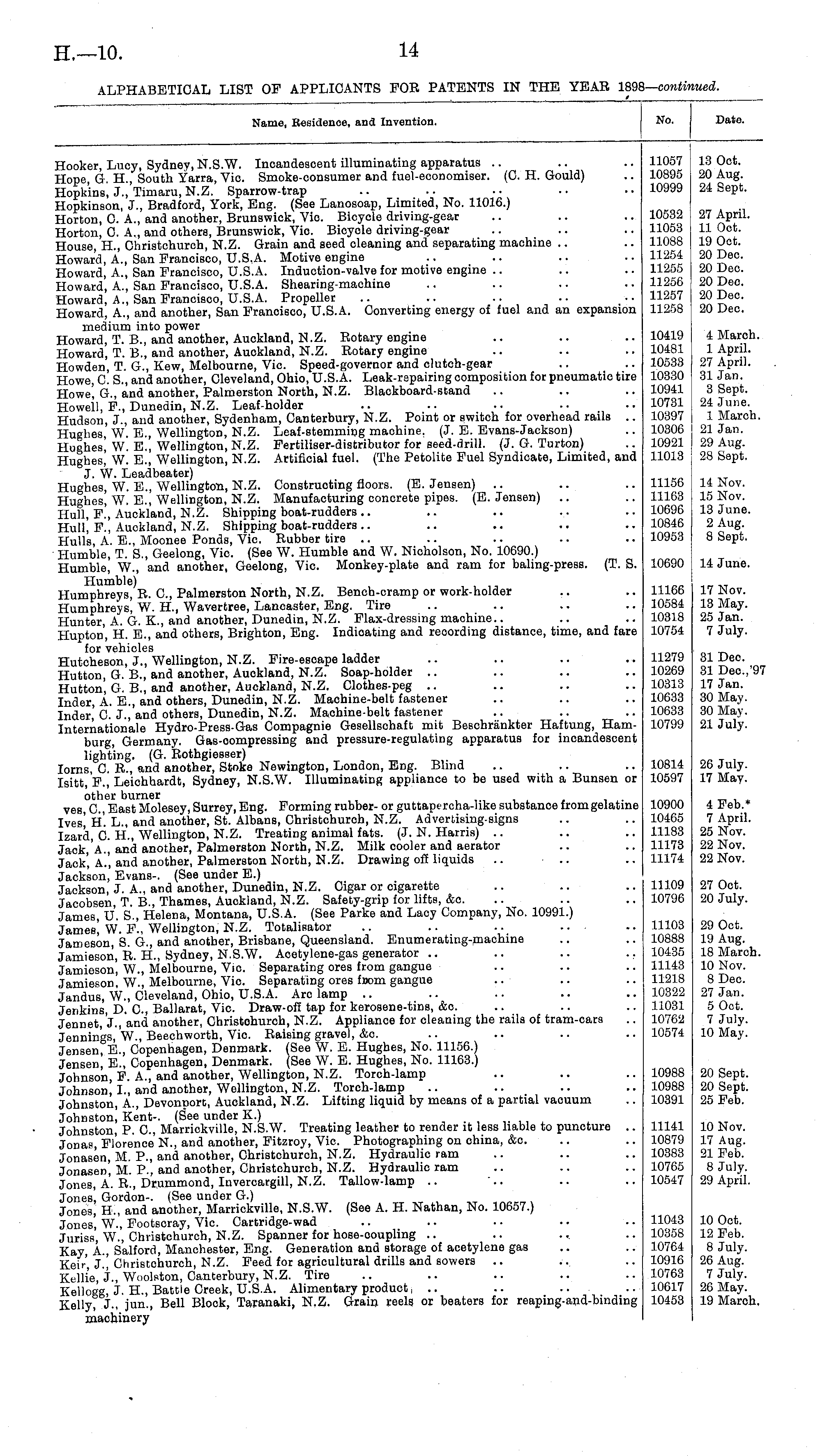 ALPHABETICAL LIST OF APPLICANTS FOR PATENTS IN THE YEAR 1898— continued.