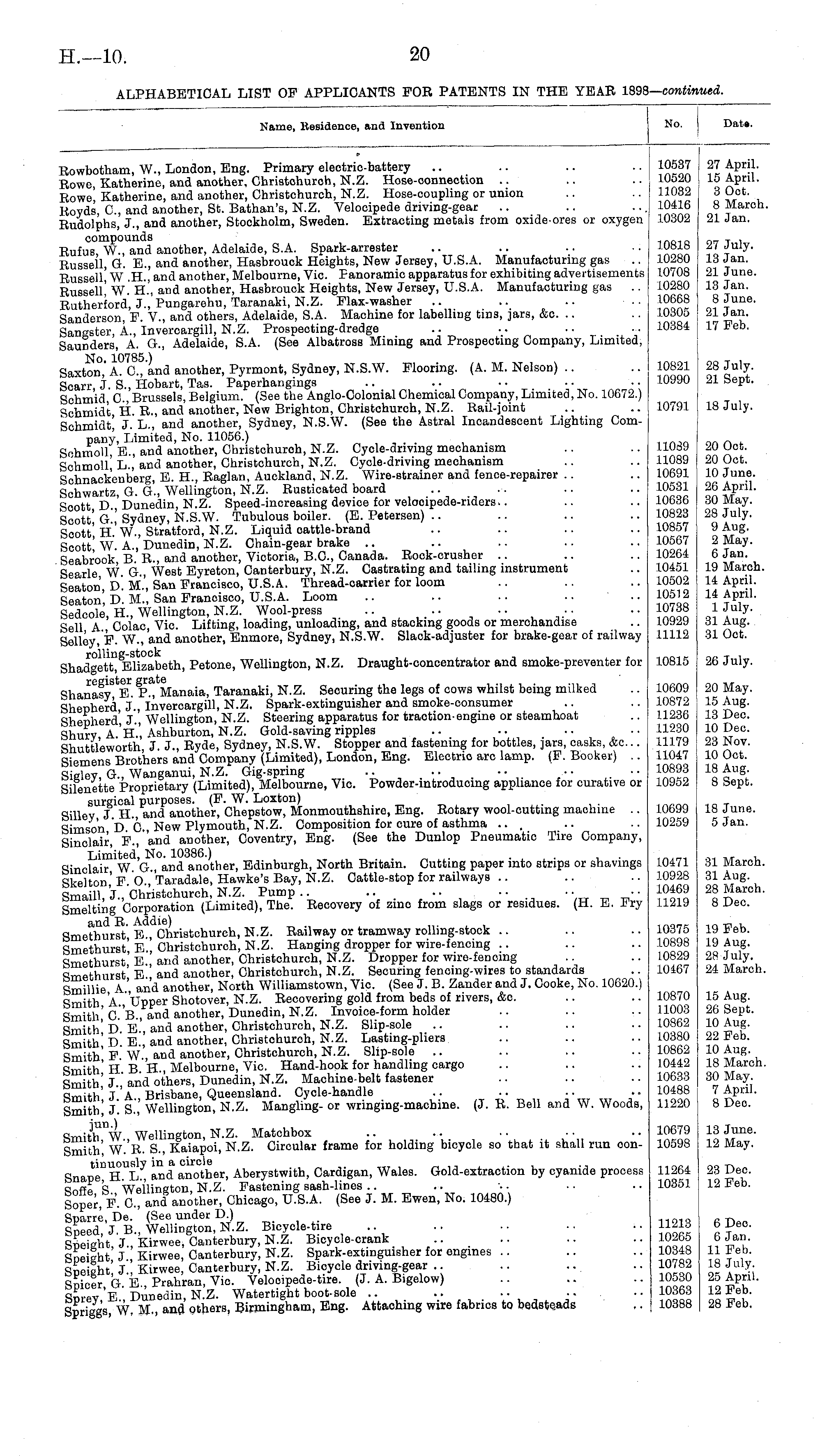 ALPHABETICAL LIST OF APPLICANTS FOR PATENTS IN THE YEAR 1898— continued.