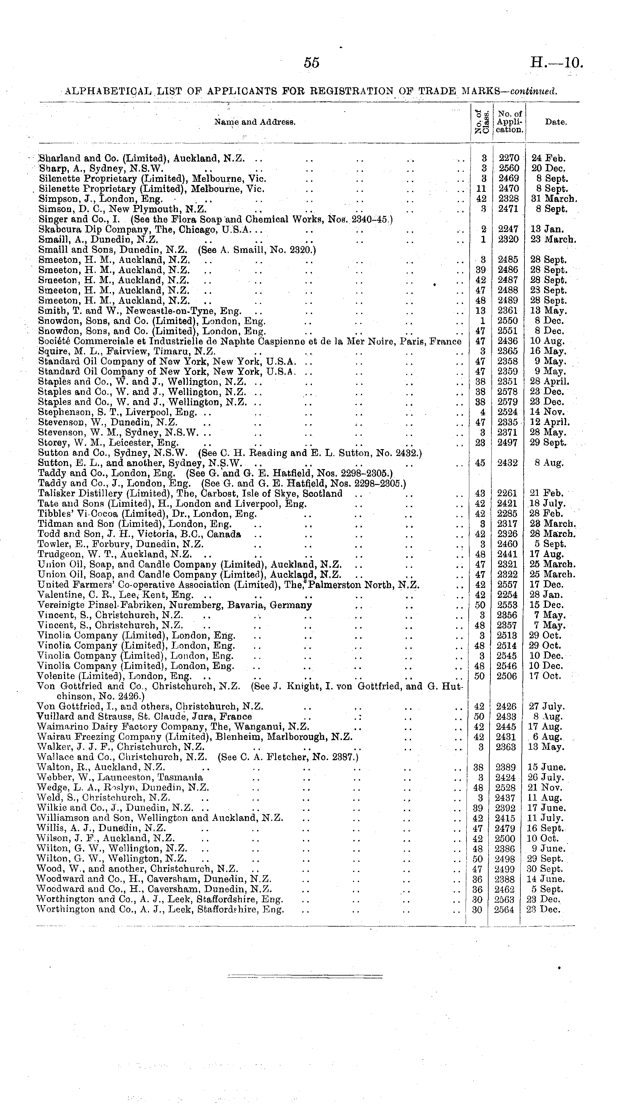 ALPHABETICAL LIST OF APPLICANTS FOR REGISTRATION OF TRADE MARKS- continued.