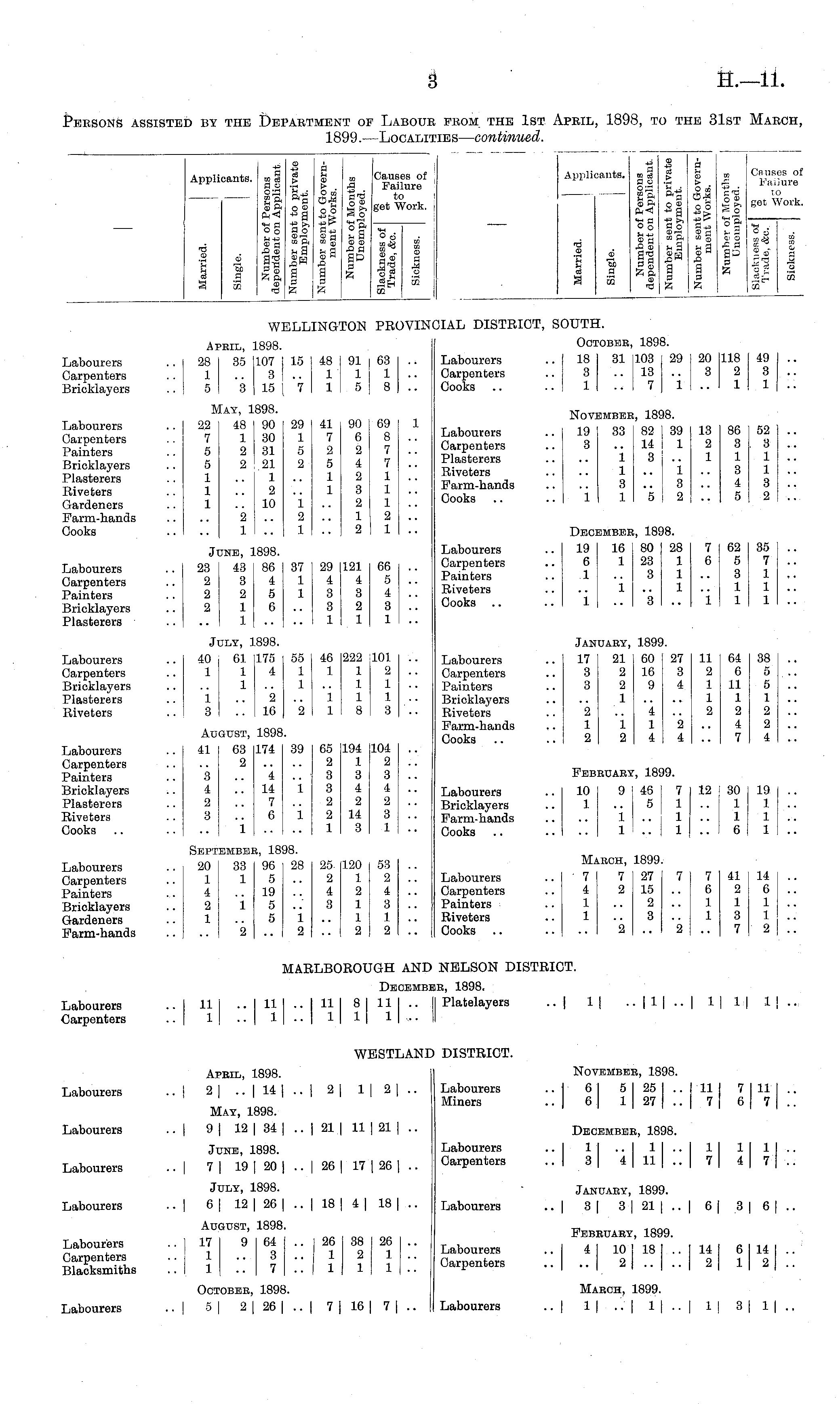 Applii cants. a B & ft og rO CD l! o t> a i O ta* o o 53 S 3 3 . o S © Hi Cause! Paih to get Wi is of ure r ork. AppH' lants. re S o ft fc-«J og IS S I a t J » n i h coft » U il I s a s i5 U o S JS o of a> o S5 I Causes of Failure TO get Work. Il 8 cu d r iTc a QQ li ji SG ID 0) d o W. *6 a Cβ w: IL] :ng: 'ON PRi iVIN' CIAL DISTRICT, SOUTH. lUTE 1898. 107 3 15 1 Octobeb, 1898. Oca 1898. 103 29 13 .. 7 1 Labourers Carpenters Bricklayers 28 35 107 15 48 91 i 63 1 .. 3 .. 1 1 1 -. .. I 5 3 15 (7 1 5 8.. W»-c 1SQR Apbil, 28 35 1 5 3 15 48 1 1 91 1 5 63 1 8 Labourers .. 18 31 103 29 20 118 49 .. Carpenters .. 3 .. 13 .. 3 2 3 .. Cooks .. .. 1 .- 7 1 .. 1 1 .'. 18 1 20 3 118 2 1 49 3 1 7 Labourers Carpenters Painters Bricklayers Plasterers Riveters Gardeners Farm-hands Cooks Mat, 1898. 22 48 90 29 41 90 69 1 7 1 30 1 7 6 8 .. 5 2 31 5 2 2 7 .. 5 2 21 2 5 4 7 .. 1 .. 1 .. 1 2 1 .. 1 .. 2 .. 1 3 1 .. 1 ..10 1 .. 2 1 .. 2 .. 2 .. 1 2 .. .... 1 .. 1 .. 2 1 .. May, ] 22 48 7 1 5 2 5 2 .898. 90 30 31 21 1 2 10 29 1 5 2 41 7 2 5 1 1 90 6 2 4 2 3 2 1 2 69 8 7 7 1 1 1 2 1 i Novbmbeb, 1898. Labourers .. I 19 33 82 | 39 13 86 52 .. Carpenters .. 3 .. 14 i 1 2 3.3.. Plasterers .. .. 1 3.. 1 1 1 .. Riveters .. .. 1 .. 1 .. 3 1 .. Farm-hands .. .. 3.. 3.. 4 3.. Cooks .. .. 1 1 6 I 2-1 .. 5 2.. Novj 19 3 ;, 1898. 82 I 39 14 I 1 3 .. 1 3 5 I 2 13 2 1 86 3 1 3 4 5 52 . 3 1 1 3 2 1 1 1 1 1 2 1 1 2 1 Decembeb, 1898. ;, 1898. 80 28 23 1 3 1 1 3 .. Labourers Carpenters Painters Bricklayers Plasterers June, 1898. .. I 23 43 86 37 29 121 66 .. 2 341445.. 2 2 5 13 3 4.. 2 1 6 .. 3 2 3 .. .... 1 .... 1 I 1 1 •• June, '. 23 43 2 3 2 2 2 1 1 L898. Labourers .. 19 16 80 28 7 62 35 .. Carpenters .. 6 1 23 1 6 5 7 .. Painters .. 1 •• 3 1 .. 3 1 ,. Riveters .. .. 1 .. 1 .. 1 1 .. Cooks .. .. 1 •• 3.. 1 1 1 .. 28 7 62 35 .. 16 5 7.. 1 .. 3 1 ,. 1 .. 1 1 .. 111.. 86 4 5 6 37 1 1 29 4 3 3 1 121 4 3 s 66 5 4 3 1 Labourers Carpenters Bricklayers Plasterers Riveters July, 1898. 40 61 175 55 46 222 101 .. 1 141112.. .... 1 .. 1 .. 1 1 .. 1 .. 2 .. 1 1 1 .. 3 1.. 16 2 1 8 3.. July, : 40 61 1 1 1 L898. 173 4 2 16 55 1 1 46 1 1 1 222 1 1 1 8 101 2 1 1 3 Januaby, 1899. Labourers .. 17 21 60 27 11 64 38 .. Carpenters .. 3 2 16 3 2 6 5 .. Painters .. 3 2 9 4 1 11 5 .. Bricklayers .. .. 1 .. -• 1 1 1 Riveters .. 2 .. 4 .. 2 2 2 .. Farm-hands .. 1 1 1 2.. 4 2.. Cooks .. .. 2 2 4 4.. 7 4.. I. 27 11 64 38 .. 3 2 6 5.. 4 1 11 5 .. 111.. 2 2 2.. 2 .. 4 2.. 4 .. 7 4.. I ■ - 2 3 I .. August, 1898. August, 1898 I, Labourers Carpenters Painters Bricklayers Plasterers Riveters Cooks 41 63 174 39 65 194 104 .. 2 .... 2 1 2 .. 3 .. 4 .. 3 3 3 .. 4 ..14 1 3 4 4.. 2 .. 7 .. 2 2 2.. 3 .. 6 1 2 14 3 .. .... 1 .... 1 3 1 .. 41 63 2 n 174 39 or, 2 3 3 2 2 1 194 1 3 4 2 14 3 104 2 3 4 2 3 1 4 14 7 6 Febbuaby, 1899. 19. 3 1 4 2 1 Labourers .. 10 9 j 46 J 12 ; 30 19 .. Bricklayers .. 1 .. 5 1 ..II 1 Farm-hands .. .. 1 .. 1 .. 1 1 Cooks .. .. .. 1 ... !•• 6 1 .. 7 12 i 30 19 .. 1 .. I 1 1 .. 1 .. 1 1 .. 1 .. 6 1 .. 3 1 Labourers Carpenters Painters Bricklayers Gardeners Farm-hands September, 1898. .. 20 33 96 28 25- 120 53 .. 1 1 5 .. 2 1 2 .. 4 .. 19 .. 4 2 4 .. .. 2" 1 5.. 3 1 3.. 1 .. 5 1 .. 1 1 .. 2.. 2.. 2 2.. iBptembe: 20 33 1 1 a, 18! 96 5 19 5 5 98. 28 25 2 4 3 120 1 2 1 1 2 March, 1899. Labourers ..7 7 27 7 7 41 14 .. Carpenters .. 4 2 15.. 6 2 6.. Painters .. 1 .. 2.. 1 1 1 .. Riveters .. 1 ■• 3.. 1 3 1 .. Cooks .. .. .. 2.. 2.. 7 ' 2 I .. 7 14 6 1 1 2 4 2 i 1 1 .. 2 1 2 2 MARLBOROUGH ANE NELSON DISTRICT. ;LB( Decemb: 11 1 as, 1898. Platelayers .. \ 1 | .. | 1 | .. | 1 | 1 | 1].. Labourers Carpenters 11 .. 11 .. 11 8 11 .. 1 .. 1 .. 1 1 1 .. WESTLANI ) DISTRICT. Labourers Apbil, 1898. .. I 2| .. I 14 I .. I 2| 1| 2| .. Novembee, 1898. Labourers .. 6 5 25 .. 11 7 11 .. Miners .. 6 127.. 7 6 7.. Labourers May, 1898. .. I 9 I 12 I 34 I .. I 21 J 11 I 21 I .. Decembeb, 1898. Labourers ..I 1 .. 1 .. 1 1 1 .. Carpenters ..| 3 4 11.. 7 4 7.. Labourers June, 1898. .. I 7 I 19 I 20 I .. I 26 I 17 I 26 I .. Labourers July, 1898. .. I 6 I 12 I 26 I .. I 18 I 4 J 18 I .. January, 1899. Labourers .. | 3| 3 | 21 | .. | 6 | 3| 6 | .. Labourers Carpenters Blacksmiths August, 1898. 17 9 64 .. 26 38 26 .. 1 .. 3 .. 1 2 1 .. 1 .. 7 .. 1 1 1 .. February, 1899. Labourers .. 4 10 18 .. 14 6 14 .. Carpenters .. .. 2 .. 2 1 2.. Labourers October, 1898. .. ! 5 I 2 I 26 I .. I 7 I 16 I 7 I .. Mabch, 1899. Labourers .. | 1 | .'. | 1 | ..' | lj 3|1|.,