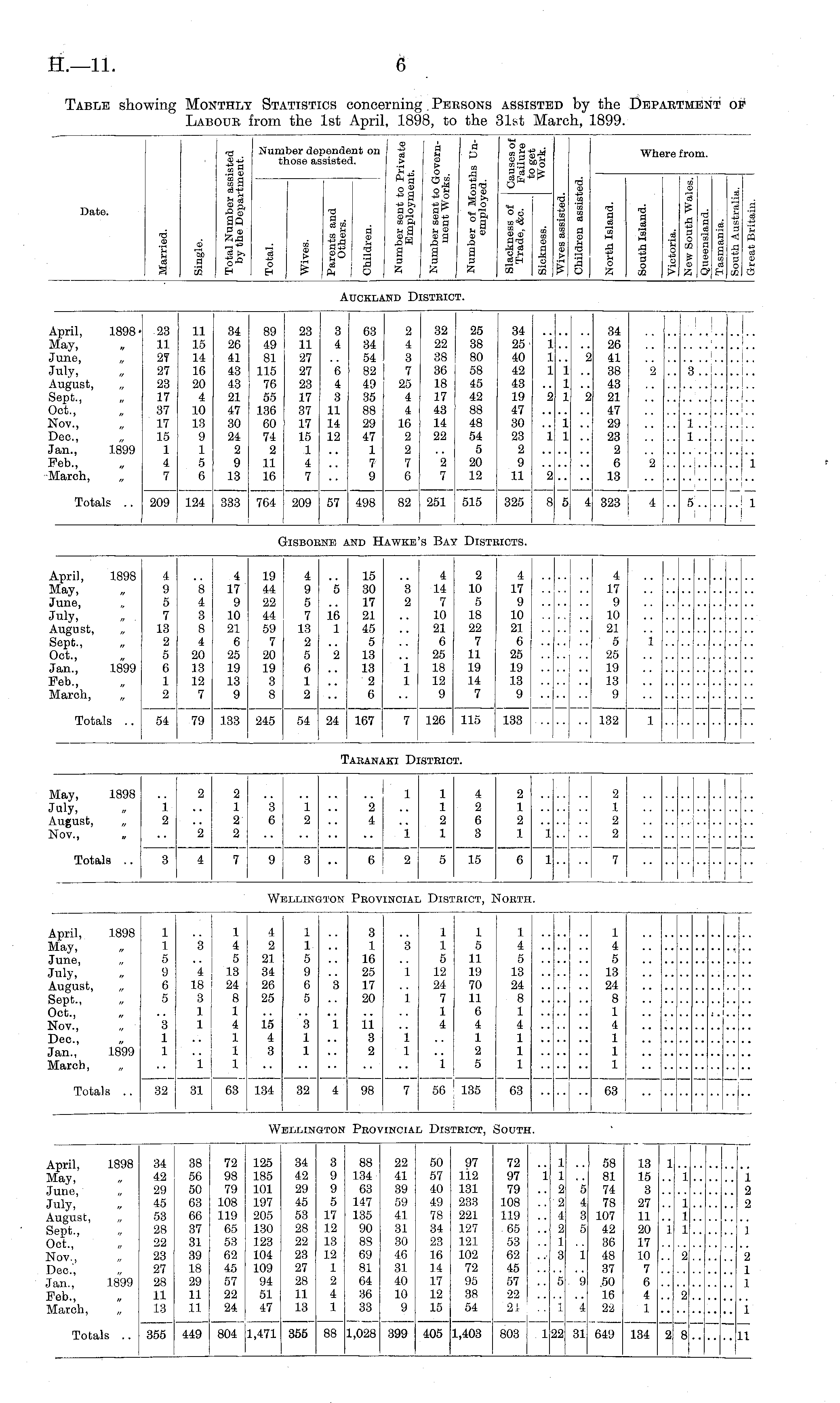 Table showing Monthly Statistics concerning Persons assisted by the Department of Labour from the 1st April, 1898, to the 31st March, 1899.