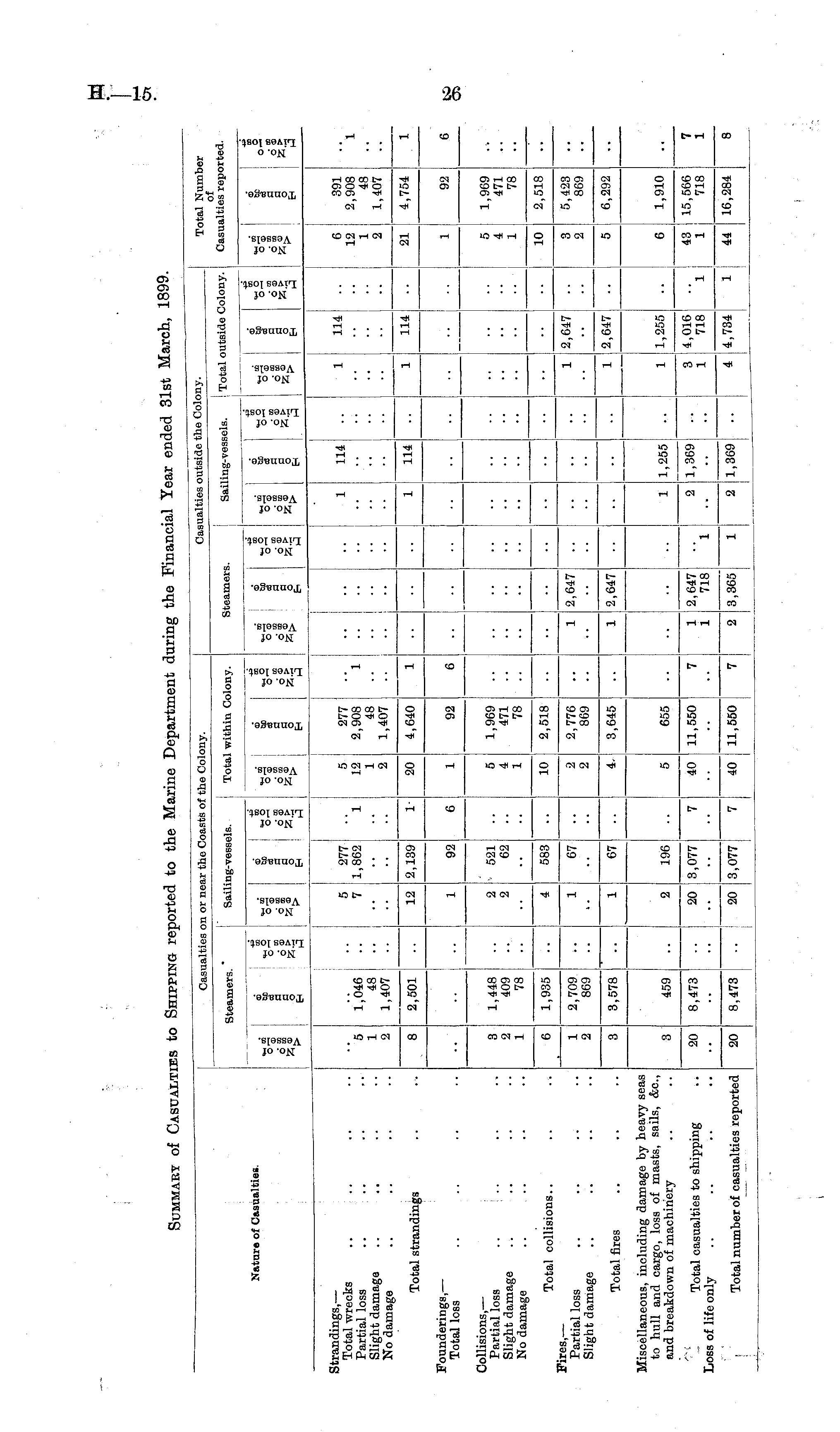 Summary of Casualties to Shipping reported to the Marine Department during the Financial Year ended 31st March, 1899.