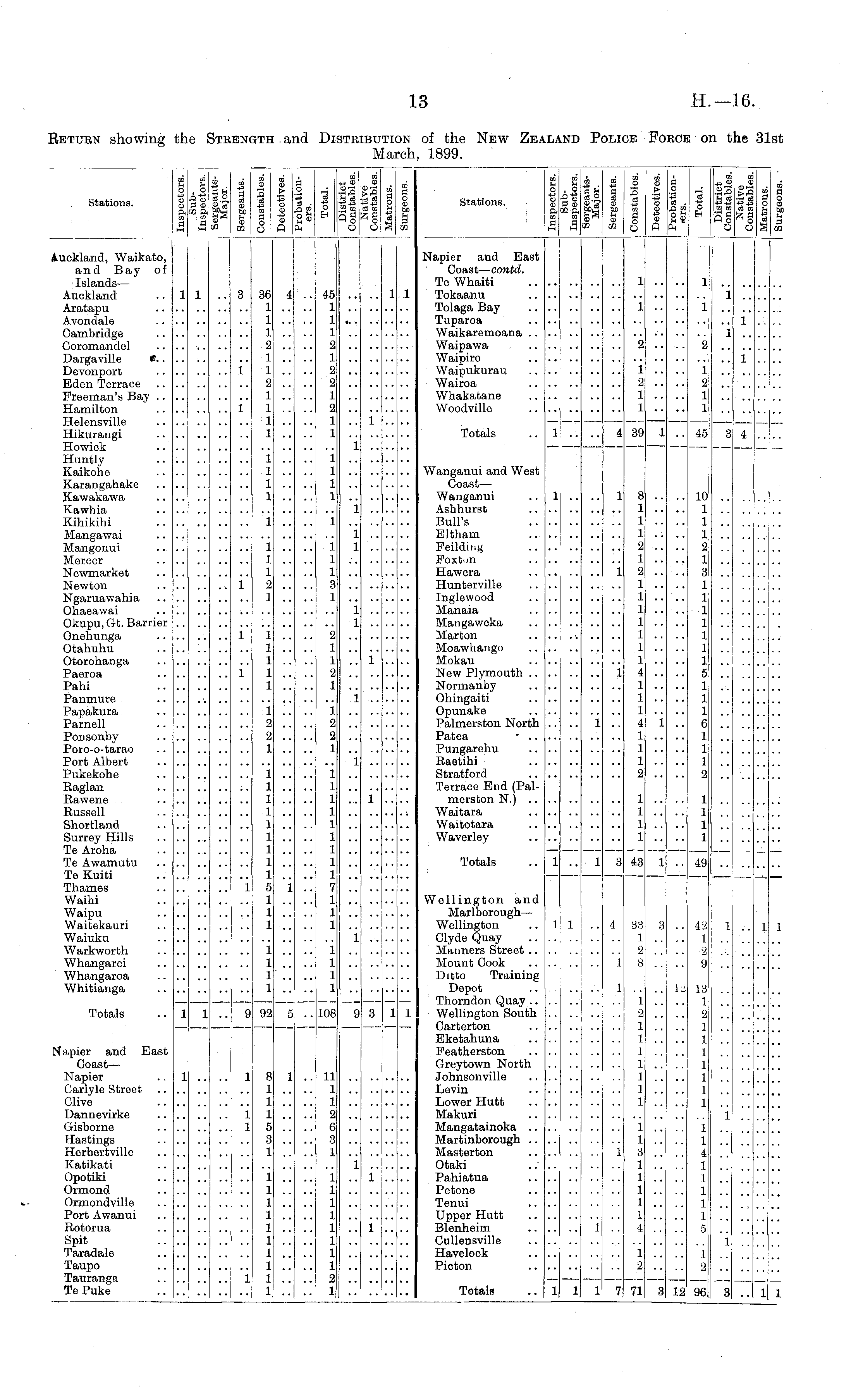 Return showing the Strength and Distribution of the New Zealand Police Force on the 31st March, 1899.