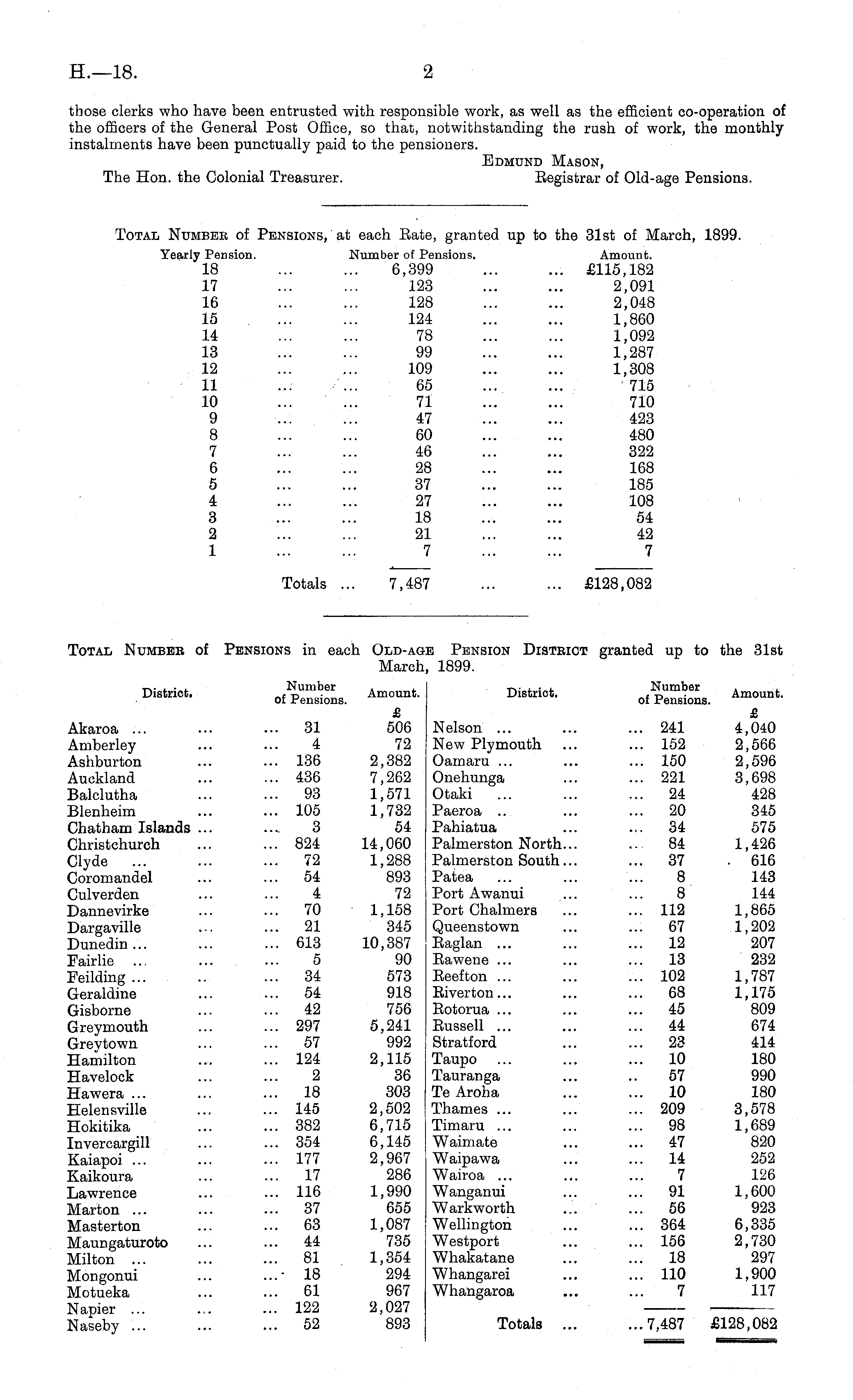 those clerks who have been entrusted with responsible work, as well as the efficient co-operation of the officers of the General Post Office, so that, notwithstanding the rush of work, the monthly instalments have been punctually paid to the pensioners. Edmund Mason, The Hon. the Colonial Treasurer. Eegistrar of Old-age Pensions.