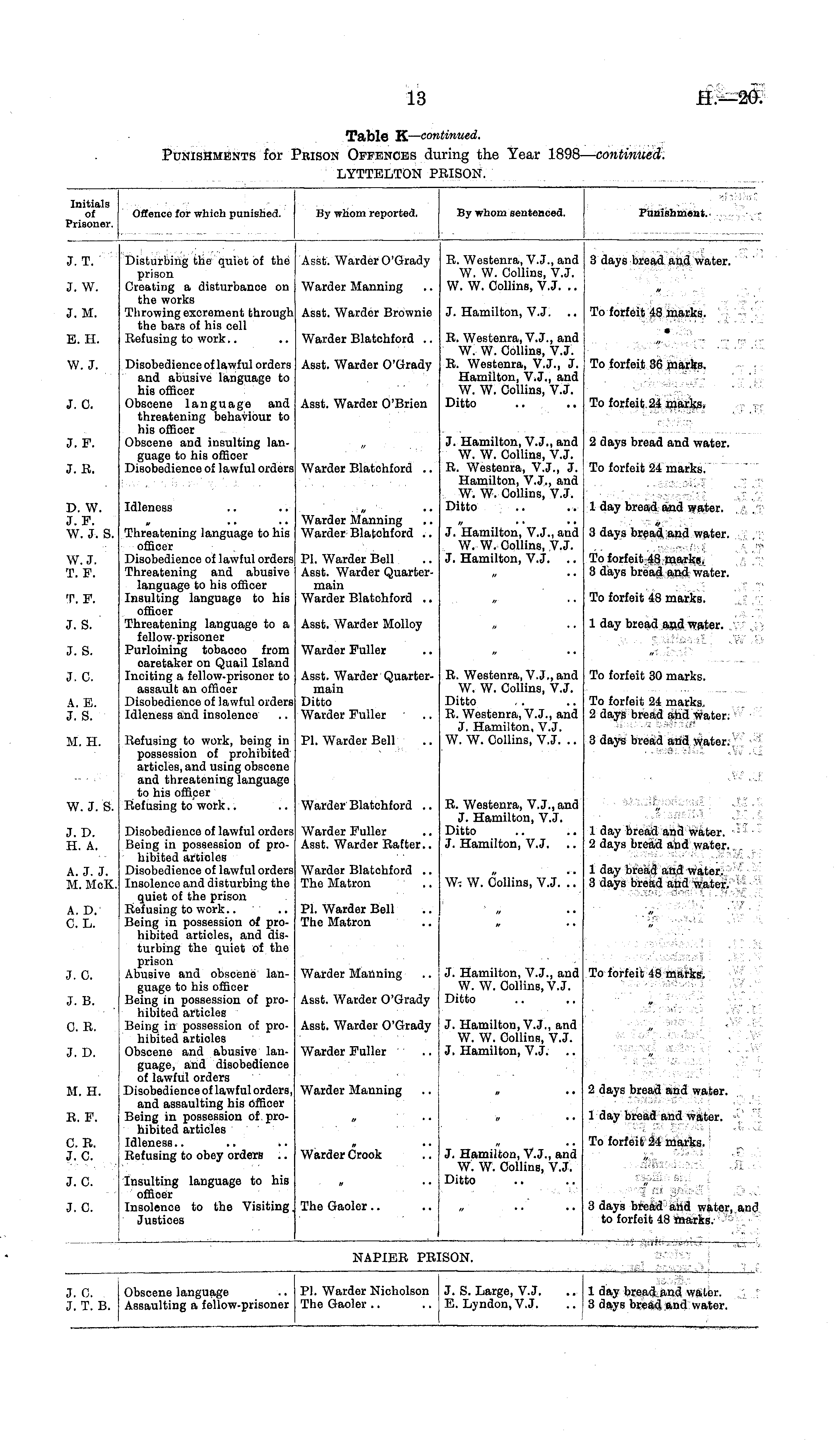 Table K—continued. Punishments for Prison Offences during the Year 1898 — continued. LYTTELTON PRISON.