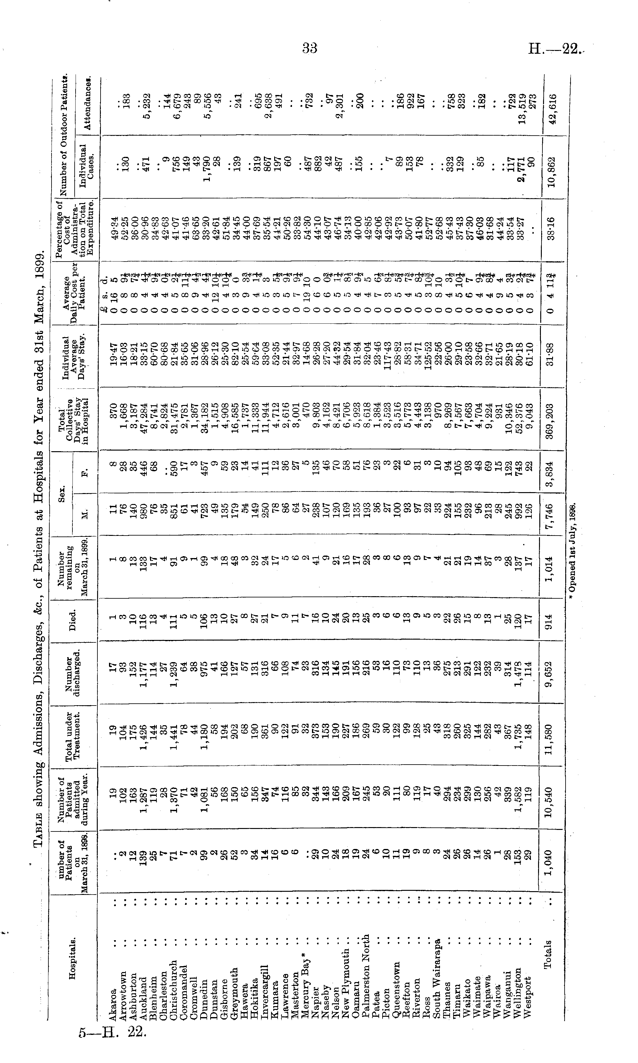 Table showing Admissions, Discharges, &c., of Patients at Hospitals for Year ended 31st March, 1899.