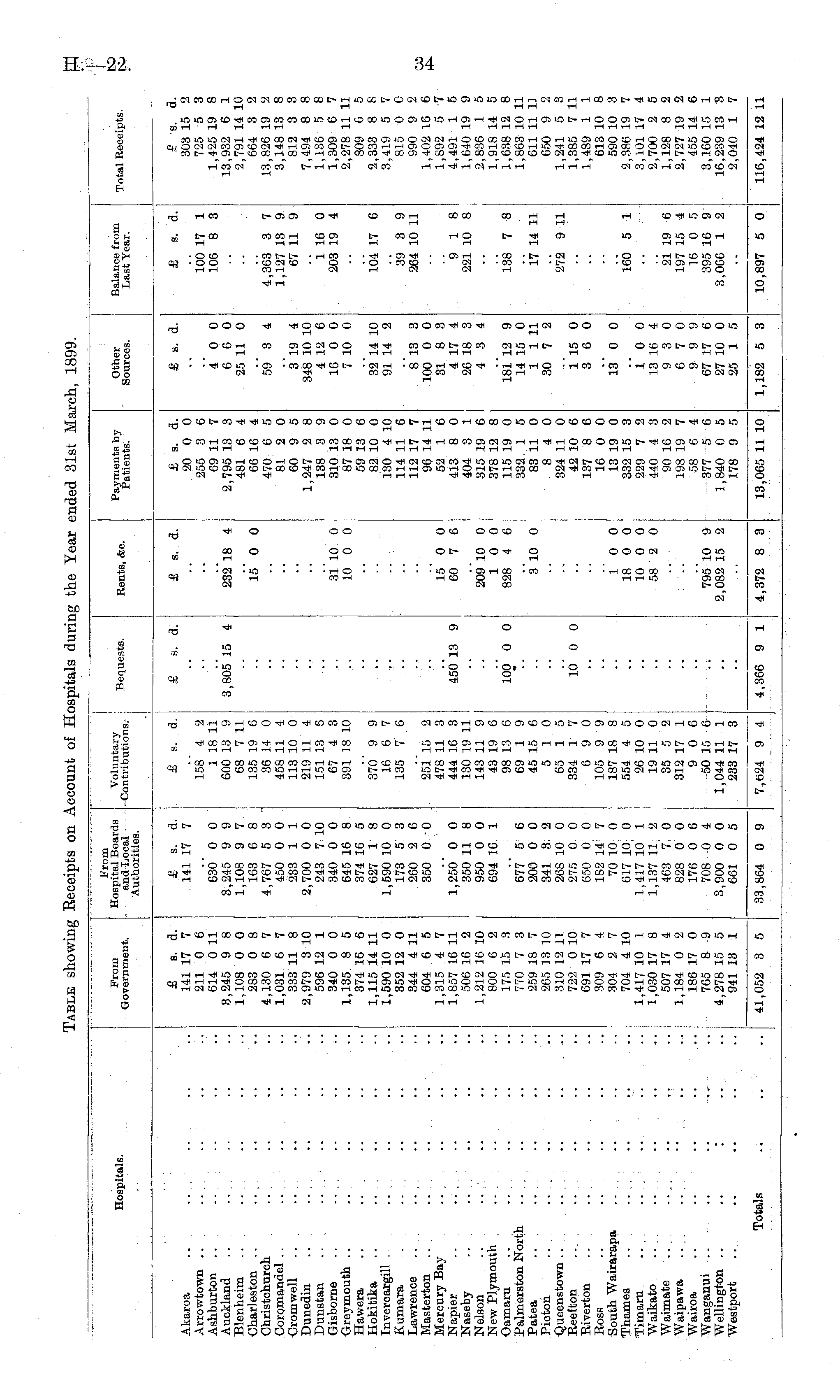 Hospitals. From Government. From Hospital Boards and Local Authorities. Voluntary -Contributions.Bequests. Eents, &c. Payments by Patients. Other Sources. Balance from Last Year. Total Eeeeipts. Akaroa .. ... Arrowtown .. .... Ashburton .. Auckland .. .... Blenheim .. ... Charleston .. .... Christchurch ... Coromandel .. .... Cromwell .. Dunedin .. Dunstan .. ... Gisborne .. .... Greymouth .. Hawera .. ... Hokitika Invercargill . ... Kumara . Lawrence ... .... Masterton .. Mercury Bay Napier .. .... Naseby .. .... Nelson .. .. ,-. New Plymouth Oamaru .. ... Palmerston North Patea .. Picton .. .... Queenstown .. Reef ton .... ... Riverton .. Ross .. South Wairarapa ... Thames .. .... Timaru .... ... "Waikato .... Waimate ... .... Waipawa ... .... Wairoa Wanganui Wellington Westport .... £ a. d. 141 17 7 211 0 6 614 0 11 3,245 9 8 1,108 0 0 283 0 8 4,130 6 7 1,031 6 7 333 11 8 2,979 3 10 596 12 1 340 0 0 1,135 8 5 374 16 6 1,115 14 11 1,590 10 0 352 12 0 344 4 11 604 6 5 1,315 4 7 1,857 16 11 506 16 2 1,212 16 10 800 6 2 175 15 3 770 7 3 259 18 7 265 13 10 310 12 11 722 0 10 691 17 7 309 6 4 304 2 7 704 4 10 1,417 10 1 1,030 17 8 507 17 4 1,184 0 2 186 17 0 765 8 9 4,278 15 5 941 13 1 £ s. d. .141 17 7 630 0 0 3,245 9 9 1,108 9 7 163 6 8 4,767 5 3 450 0 0 233 1 1 2,700 0 0 243 7 10 340 0 0 645 16 8 374 16 5 627 1 8 1,590 10 0 173 5 3 260 2 6 350 0 0 1,250 0 0 350 11 8 950 0 0 694 16 1 £ s.'. d. 158 4 2 1 18 11 600 13 9 68 7 11 135 19 6 36 14 0 458 11 4 113 10 0 219 11 4 151 13 6 67 4 3 391 18 10 370 9 9 16 6 7 135 7 6 251 15 2 478 11 3 444 16 3 130 19 11 143 11 9 43 19 6 98 13 6 69 1 9 45 15 6 5 1 0 65 1 5 334 1 7 6 9 0 105 9 9 187 18 8 554 4 5 26 10 0 19 11 0 35 5 2 312 17 1 9 0 6 50 15 6 1,044 11 1 233 17 3 £ s. d. 3,805 15 4 450 13 9 £ s. d. 232' 18 4 15' 0 0 31 10 0 10 0 0 15 0 0 60 7 6 £ s. d. 20 0 0 255 3 6 69 11 7 2,795 13 3 481 6 4 66 16 4 470 6 5 81 2 0 60 9 5 1,247 2 8 138 3 9 310 13 0 87 18 0 59 13 6 82 10 0 130 4 10 114 11 6 112 17 7 96 14 11 52 1 6 413 8 0 404 3 1 315 19 6 378 12 8 115 19 0 332 1 5 83 11 0 8 4 0 324 11 0 42 10 6 137 8 6 16 0 0 13 19 0 332 15 3 229 7 2 440 4 3 90 16 2 198 19 7 58 6 4 377 5 6 1,840 0 5 178 9 5 £ s. d. 4 0 0 6 6 0 25 11 0 59 3 4 3 19 4 348 10 10 4 12 6 16 0 0 7 10 0 32 14 10 91 14 2 8 13 3 100 0 0 31 8 3 4 17 4 26 18 3 4 3 4 £ s. d. 100 17 1 106 8 3 4,363 3 7 1,127 13 9 67 11 9 i 16 0 203 19 4 104 17 6 39 3 9 264 10 11 9 18 221 10 8 £ s. d. 303 15 2 725 5 3 1,425 19 8 13,932 6 1 2,791 14 10 664 3 2 13,826 19 2 3,148 13 8 812 3 3 7,494 8 8 1,136 5 8 1,309 6 7 2,278 11 11 809 6 5 2,333 8 8 3,419 5 7 815 0 0 990 9 2 1,402 16 6 1,892 5 '7 4,491 1 5 1,640 19 9 2,836 1 5 1,918 14 5 1,638 12 8 1,863 10 11 611 11 11 650 9 2 1,241 5 3 1.385 7 11 1,489 1 1 613 10 8 590 10 3 2.386 19 7 3,101 17 4 2,700 2 5 1,128 8 2 2,727 19 2 455 14 6 3,160 15 1 16,239 13 3 2,040 1 7 - 209 10 0 10 0 828 4 6 677 5 6 200 0 0 341 3, 2 268 10 0 275 0 0 650 0 0 182 14 7 70 10 0 617 10 0 1,417 10 1 1,137 11 2 463 7 0 828 0 0 176 0 6 708 0 4 3,900 0 0 661 0 5 100 0 0 181 12 9 14 15 0 1 111 30 7 2 138 7 8 3 10 0 17 14 11 10 0 0 1 15 0 3 6 0 272 9 11 10 0 18 0 0 10 0 0 58 2 0 13' 0 0 10 0 1.3 16 4 9 3 0 6 7 0 9 9 9 67 17 6 27 10 0 25 1 5 160 5 1 795 10 9 2,082 15 2 21 19 6 197 15 4 16 0 5 395 16 9 3,066 1 2 •• Totals 41,052 3 5 33,864 0 9 7,624 9 4 4,366 9 1 4,372 8 3 13,065 11 10 1,182 5 3 10,897 5 0 116,424 12 l: