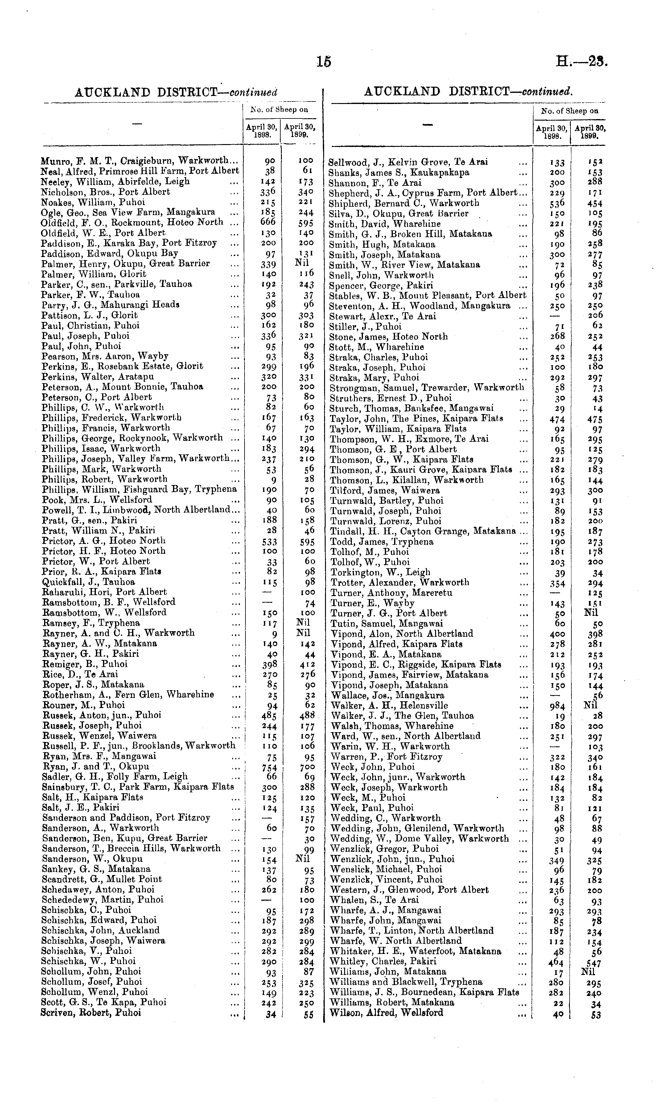 IS'o. of Sheep on April 30, April 30, 1898. 1899. Munro, F. M. T., Craigieburn, Warkworth... Neal, Alfred, Primrose Hill Farm, Port Albert Neeley, William, Abirfelde, Leigh Nicholson, Bros., Port Albert Noakes, William, Puhoi Ogle, Geo., Sea View Farm, Mangakura Oldfield, F. O., Eoekmount, Hoteo North ... Oldfield, W. E., Port Albert Paddison, E., Karaka Bay, Port Fitzroy Paddison, Edward, Okupu Bay Palmer, Henry, Okupu, Great Barrier Palmer, William, Glorit Parker, C, sen., Parkville, Tauhoa Parker, F. W., Tauhoa Parry, J. G., Mahurangi Heads Pattieon, L. J., Glorit Paul, Christian, Puhoi Paul, Joseph, Puhoi Paul, John, Puhoi Pearson, Mrs. Aaron, Wayby Perkine, E., Rosebank Estate, Glorit Perkins, Walter, Aratapu Peterson, A., Mount Bonnie, Tauhoa Peterson, C, Port Albert Phillips, 0. W., Warkworth Phillips, Frederick, Warkworth Phillips, Francis, Warkworth Phillips, George, Rockynook, Warkworth ... Phillips, Isaac, Warkworth Phillips, Joseph, Yalley Farm, Warkworth.,. Phillips, Mark, Warkworth Phillips, Robert, Warkworth Phillips, William, Fishguard Bay, Tryphena Pook, Mrs. L., Wellsford Powell, T. I., Liinbwood, North Albertland... Pratt, G., sen., Pakiri Pratt, William N., Pakiri Prictor, A. G., Hoteo North Prictor, H. F., Hoteo North Prictor, W., Port Albert Prior, K. A., Kaipara Flats Quiekfall, J., Tauhoa Raharuhi, Hori, Port Albert Ramsbottom, B. F., Wellsford Ramsbottom, W., Wellsford Ramsey, F., Tryphena Rayner, A. and 0. H., Warkworth Rayner, A. W., Matakana Rayner, G. H., Pakiri Rerniger, B., Puhoi Rice, D., Tβ Arai Roper, J. S., Matakana Rotherham, A., Fern Glen, Wharehine Rouner, M., Puhoi Russek, Anton, jun., Puhoi Russek, Joseph, Puhoi Russek, Wenzel, Waiwera Russell, P. F., jun., Brooklands, Warkworth Ryan, Mrs. F., Mangawai fiyan, J. and T., Okupu Sadler, G. H., Folly Farm, Leigh Sainsbury, T. C, Park Farm, Kaipara Flats Salt, H., Kaipara Flats Salt, J. E., Pakiri Sanderson and Paddison, Port Fitzroy Sanderson, A., Warkworth Sanderson, Ben, Kupu, Great Barrier Sanderson, T., Breccia Hills, Warkworth ... Sanderson, W., Okupu Sankey, G. S., Matakana Scandrett, G., Mullet Point Schedawey, Anton, Puhoi Schededewy, Martin, Puhoi Schischka, 0., Puhoi Schischka, Edward, Puhoi Schischka, John, Auckland Schischka, Joseph, Waiwera Schischka, V., Puhoi Schischka, W., Puhoi Scholium, John, Puhoi Scholium, Josef, Puhoi Scholium, Wenzl, Puhoi Scott, G. S., Te Kapa, Puhoi Scriven, Robert, Puhoi .,, 90 38 142 336 2I S 185 666 130 200 97 339 140 192 3 2 98 300 162 336 95 93 299 320 200 73 82 167 67 140 ■83 237 53 9 190 90 40 188 28 533 100 33 82 "5 100 61 173 340 22[ 244 595 140 200 131 Nil 116 243 37 96 3°3 [80 321 90 83 196 33' 200 80 60 ,63 70 130 294 210 56 28 70 lO J 60 '58 46 595 100 60 98 98 100 74 100 Nil Nil 142 44 276 90 32 62 488 177 107 106 95 700 69 288 '5° 117 9 140 40 398 270 85 2 5 94 485 244 "5 110 75 754 66 300 I2 5 124 120 '35 '57 70 3° 99 Nil 95 73 180 100 172 298 289 299 284 284 87 60 130 '54 '37 80 262 95 187 292 292 282 290 93 253 '49 242 34 3*5 223 250 55