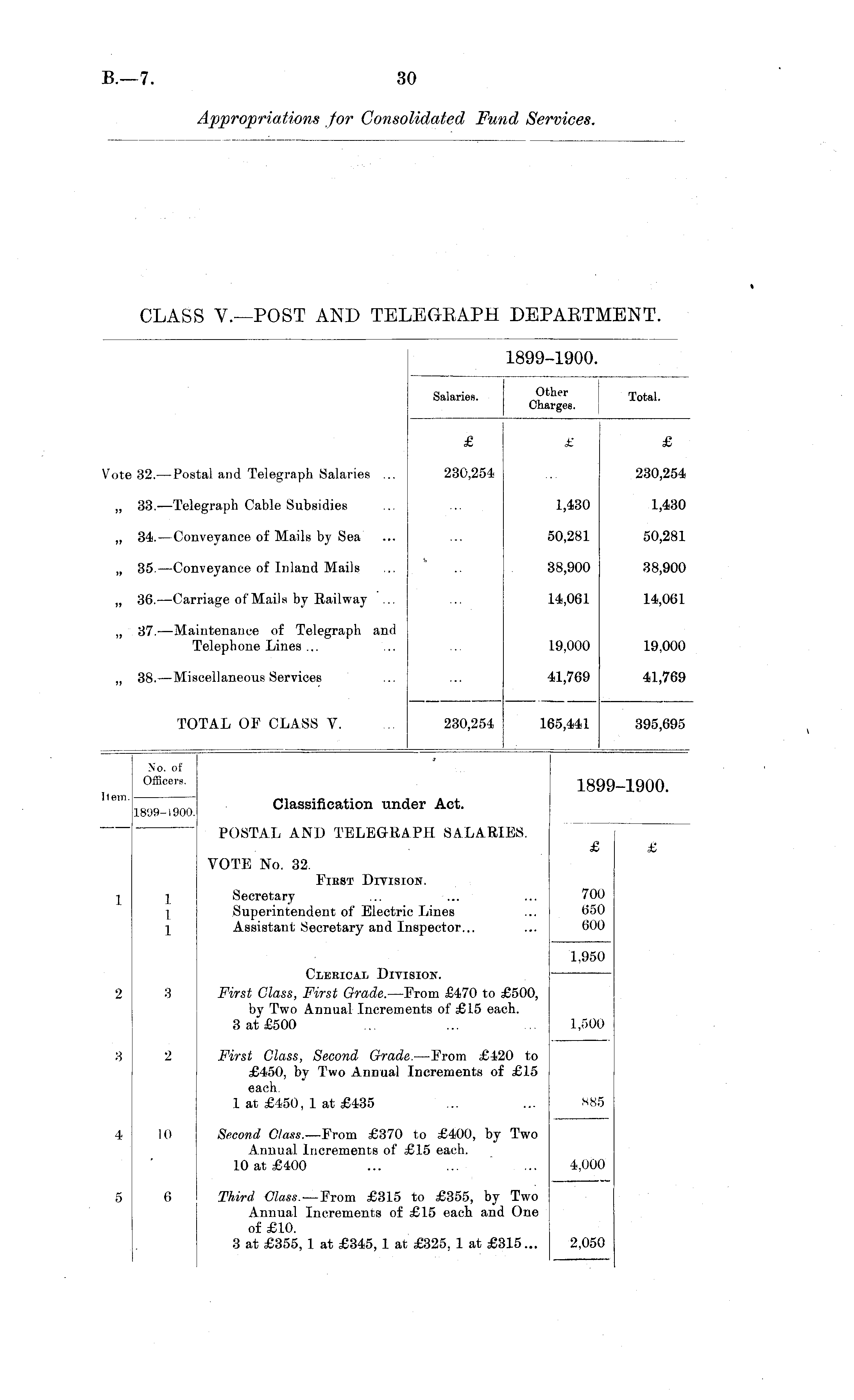 CLASS V.—POST AND TELEGRAPH DEPARTMENT.