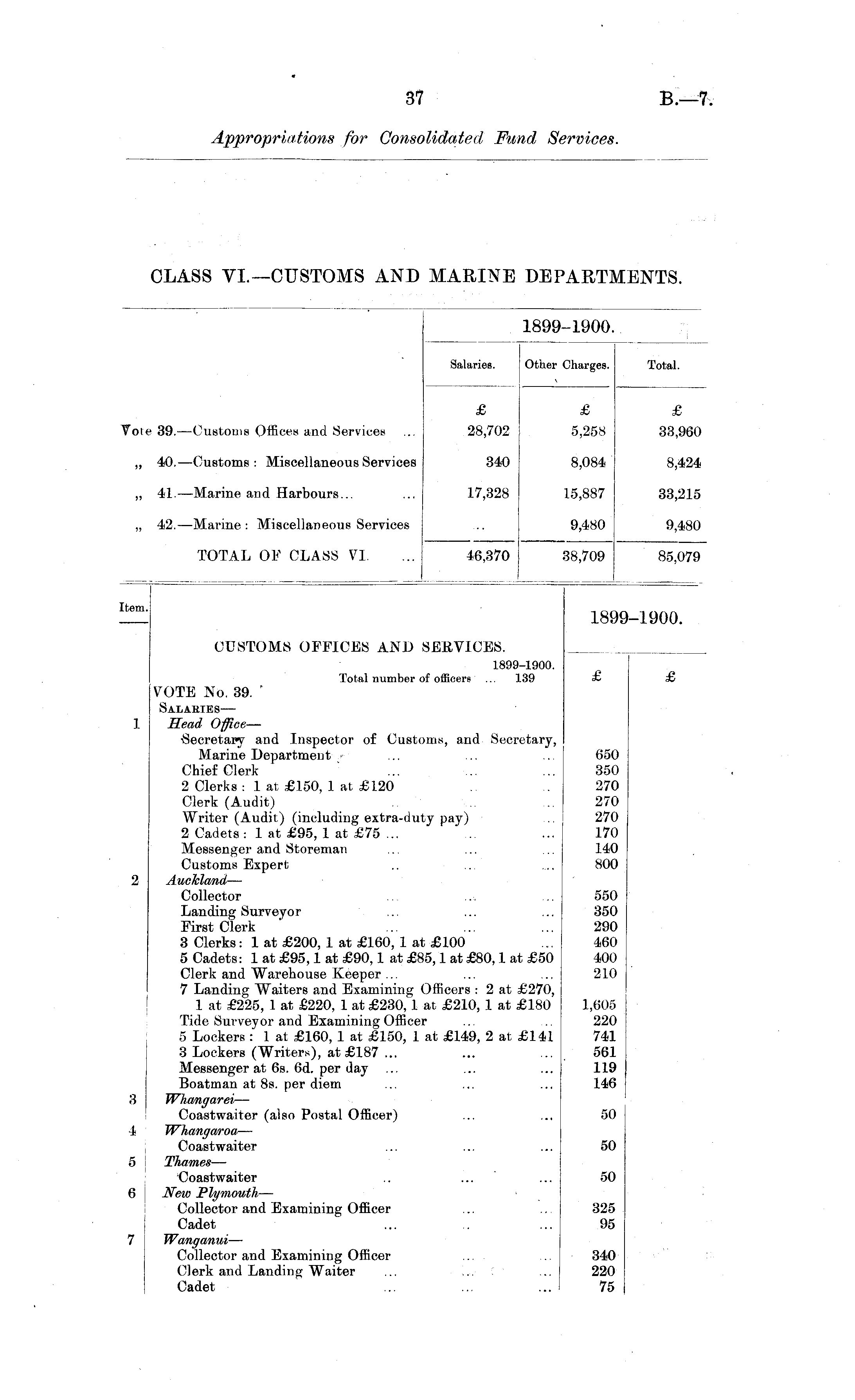 CLASS VI.—CUSTOMS AND MARINE DEPARTMENTS.