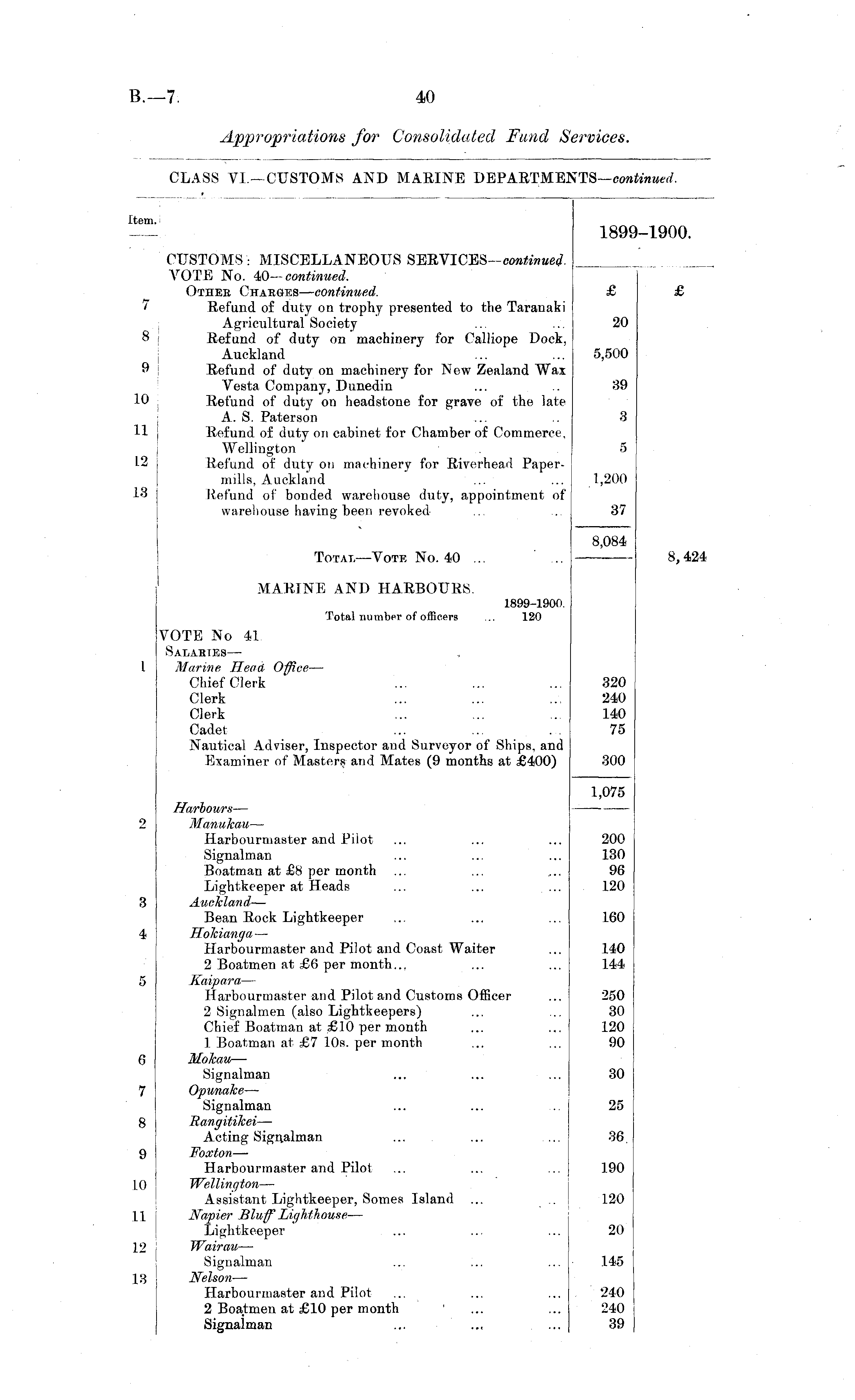 CLASS VI.—CUSTOMS AND MARINE DEPARTMENTS— continued.