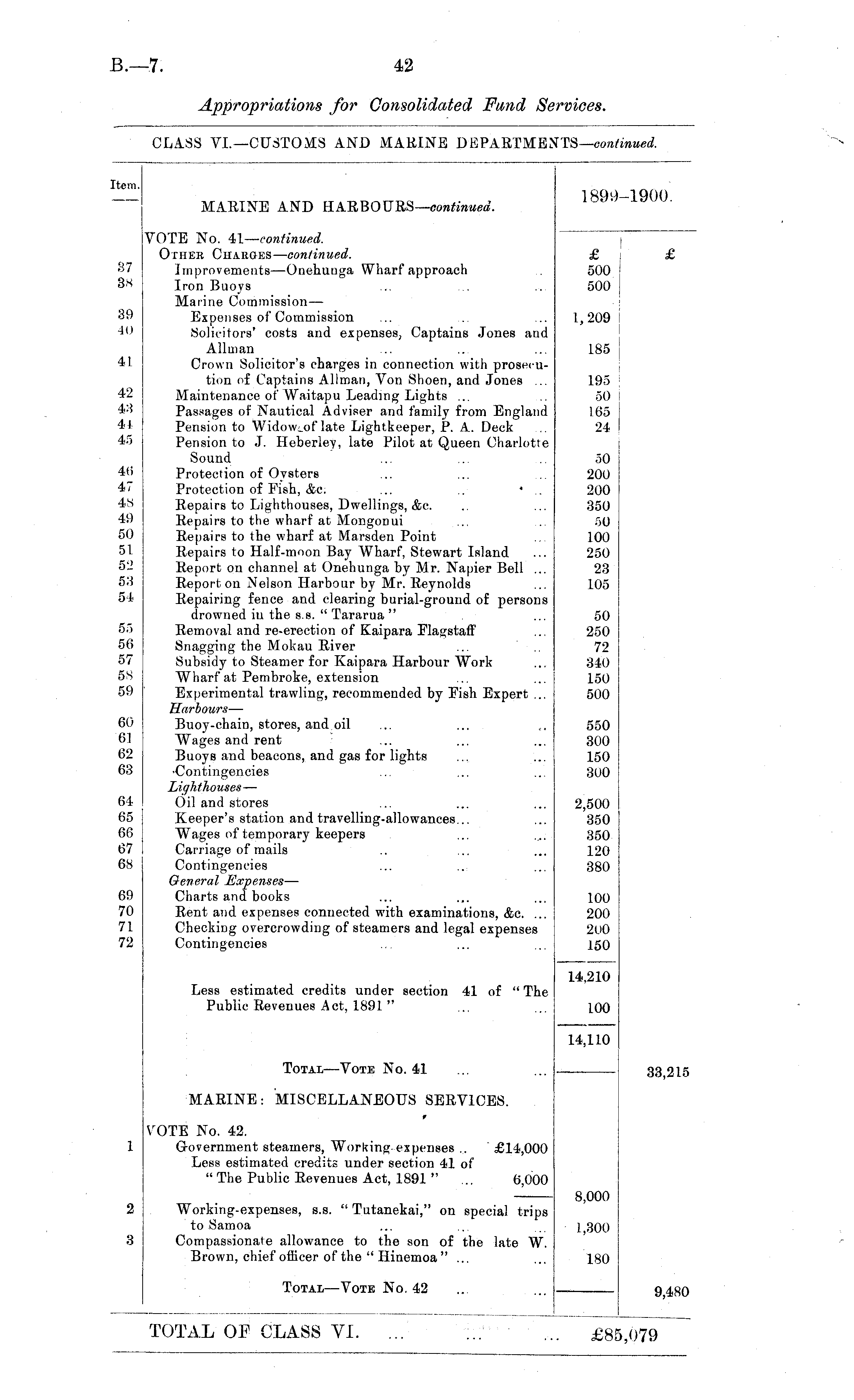 CLASS VI.—CUSTOMS AND MARINE DEPARTMENTS— continued.