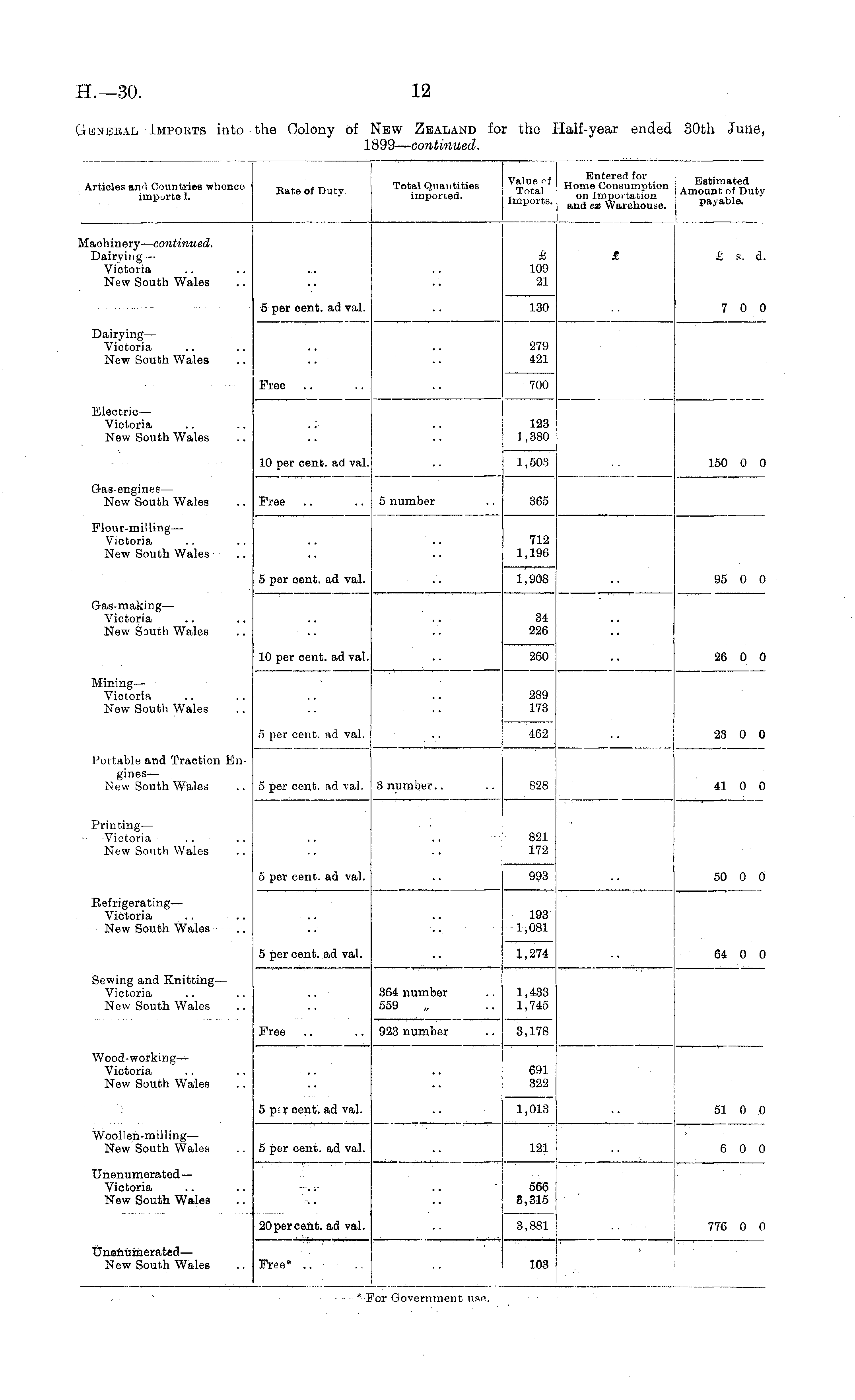 General Imports into the Colony of New Zealand for the Half-year ended 30th June, 1899— continued.