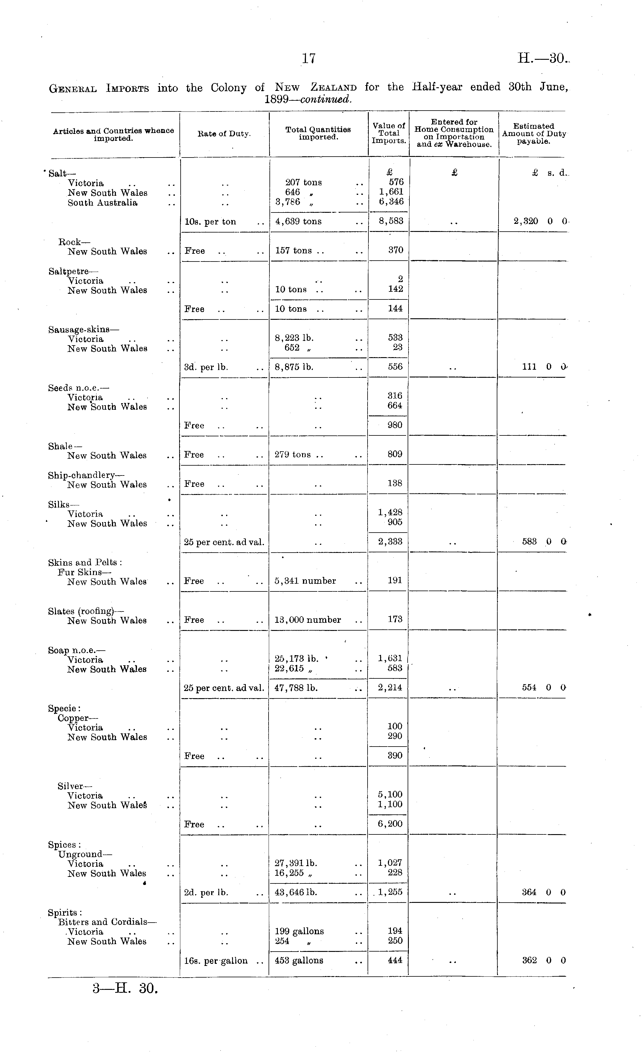 General Imports into the Colony of New Zealand for the Half-year ended 30th June, 1899— continued.