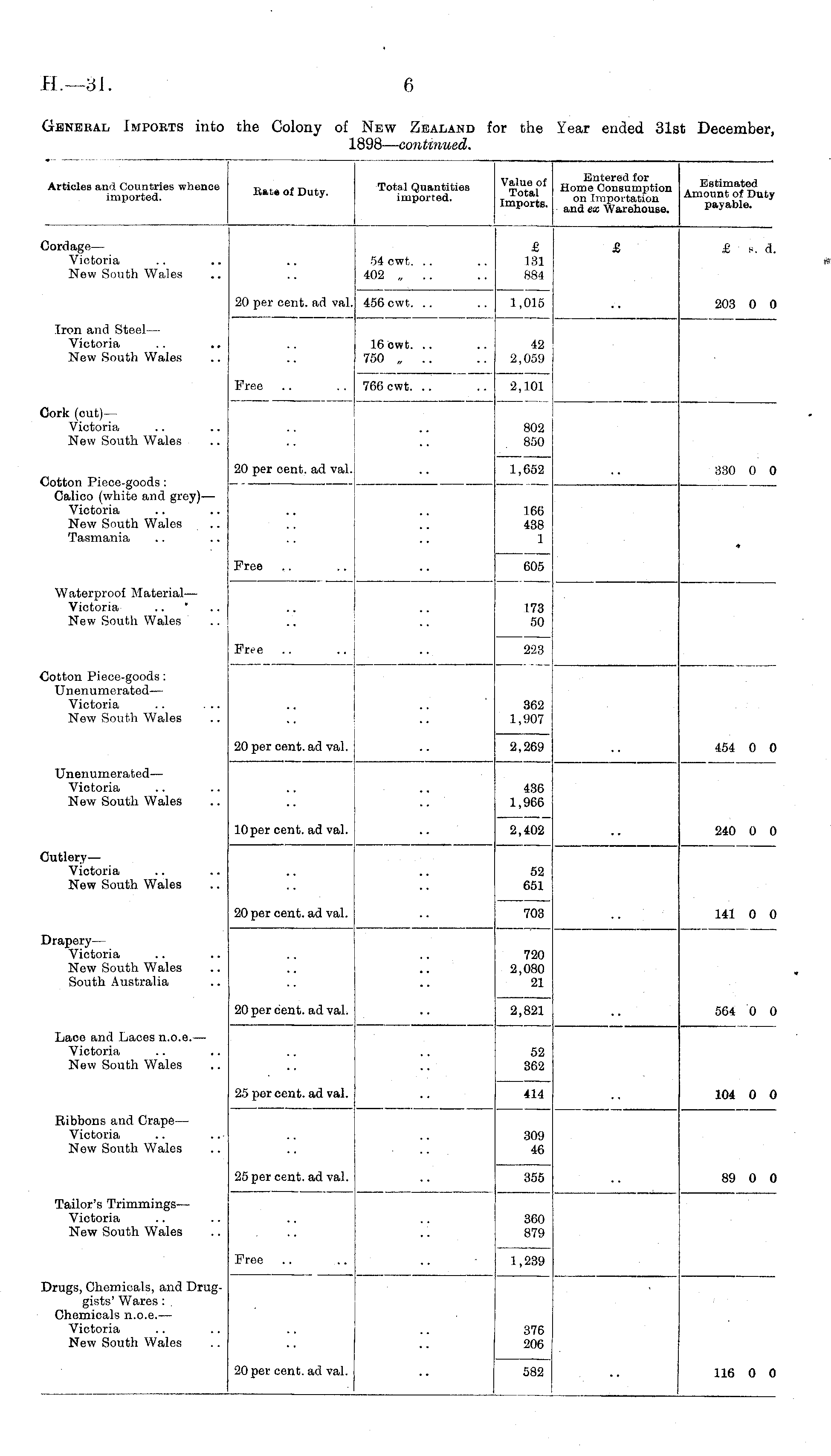 General Imports into the Colony of New Zealand for the Year ended 31st December, 1898— continued.