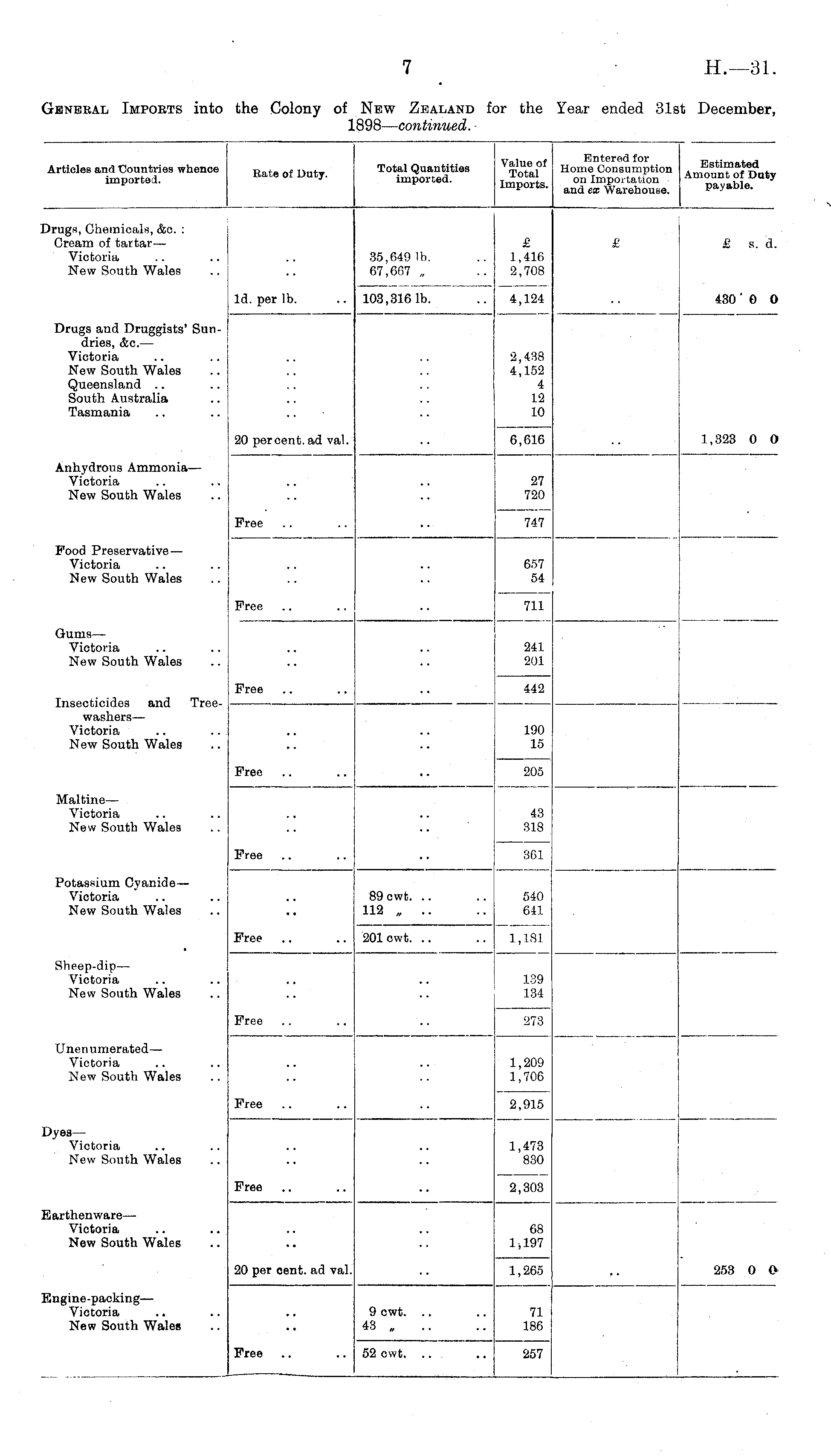 General Imports into the Colony of New Zealand for the Year ended 31st December, 1898 — continued.