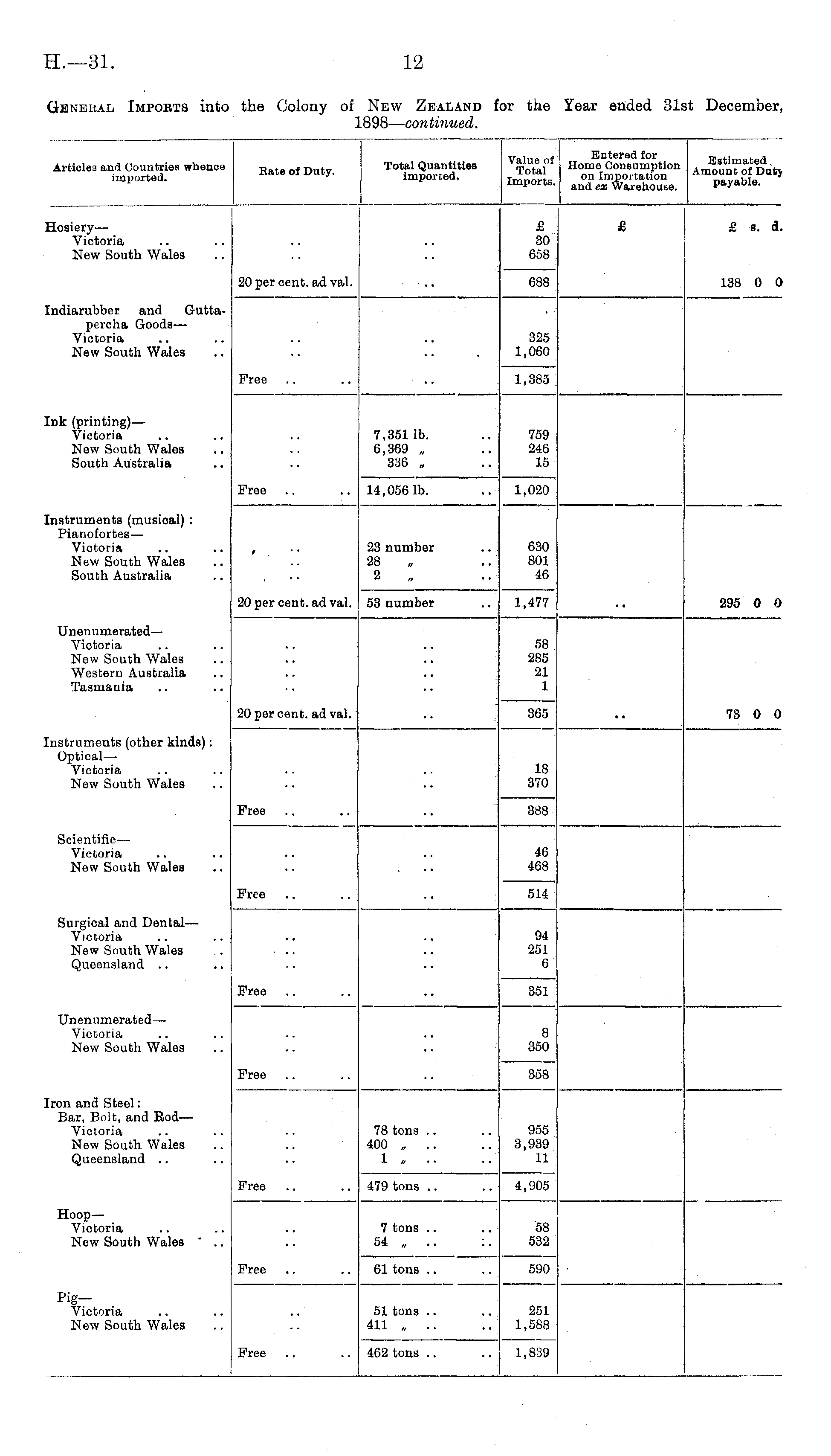 General Imports into the Colony of New Zealand for the Year ended 31st December, 1898— continued.