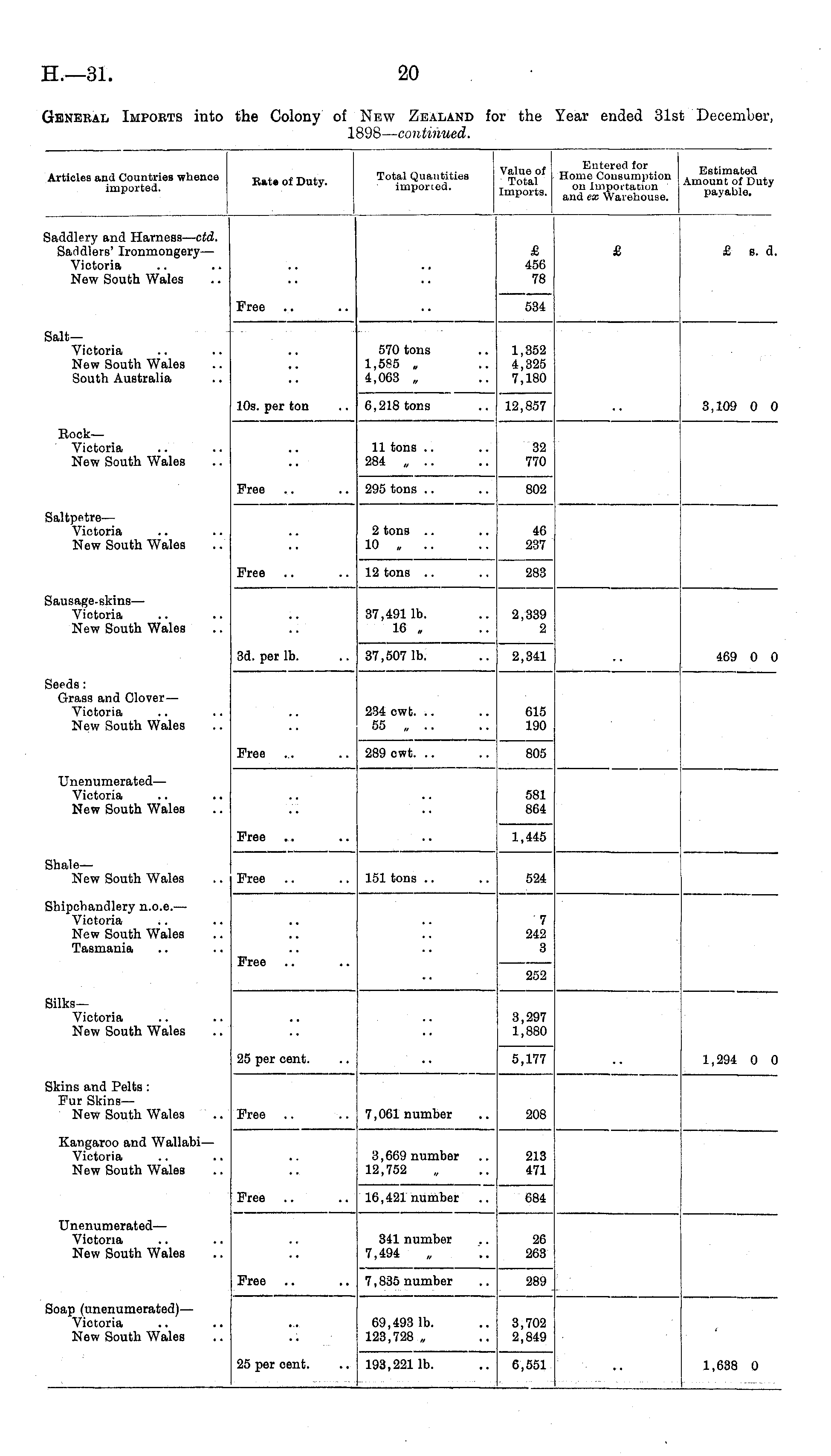 General Imports into the Colony of New Zealand for the Year ended 31st December, 1898— continued.