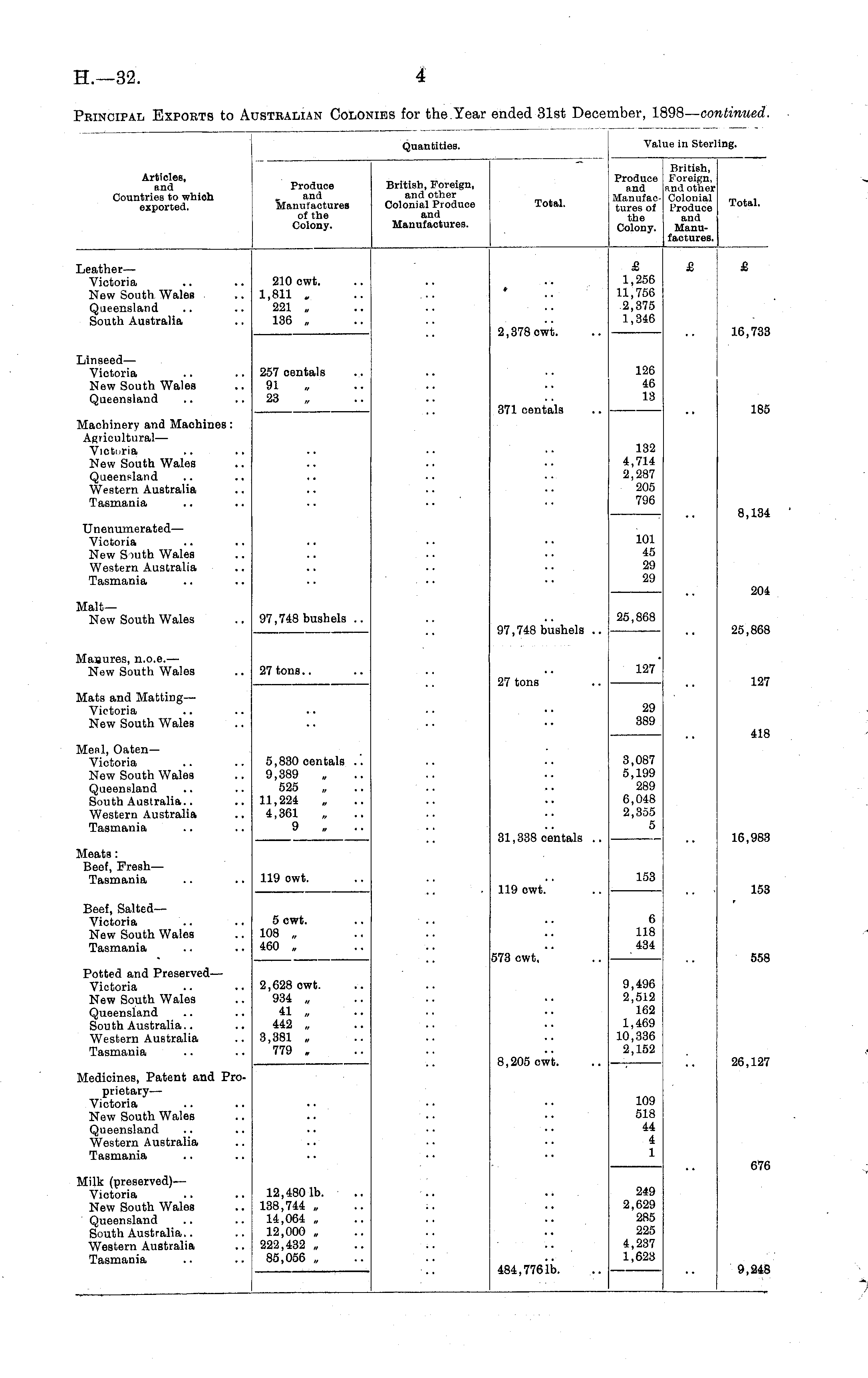 Principal Exports to Australian Colonies for the Year ended 31st December, 1898— continued.