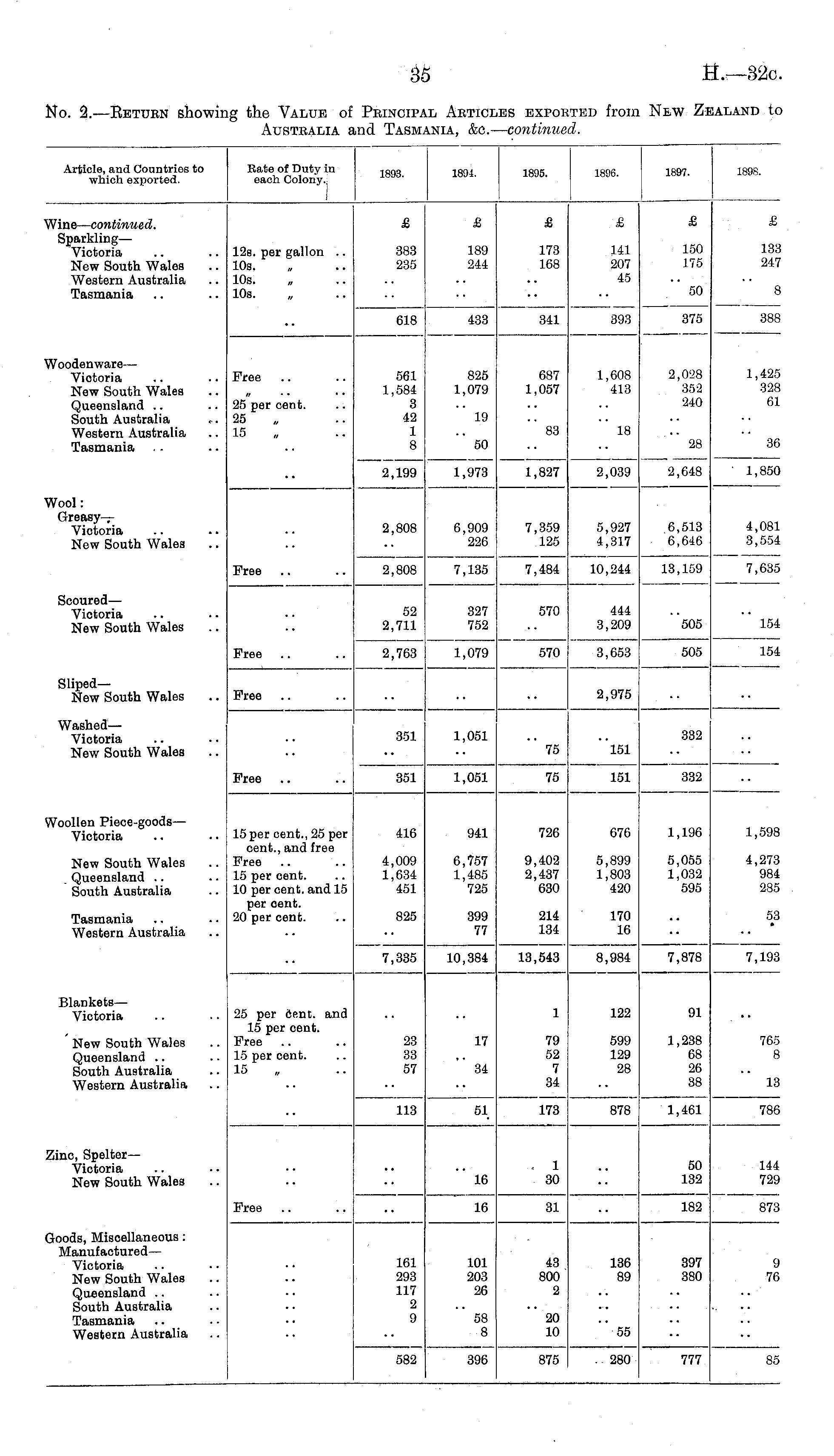 No. 2.—Return showing the Value of Principal Articles exported from New Zealand to Australia and Tasmania, &c.— continued.