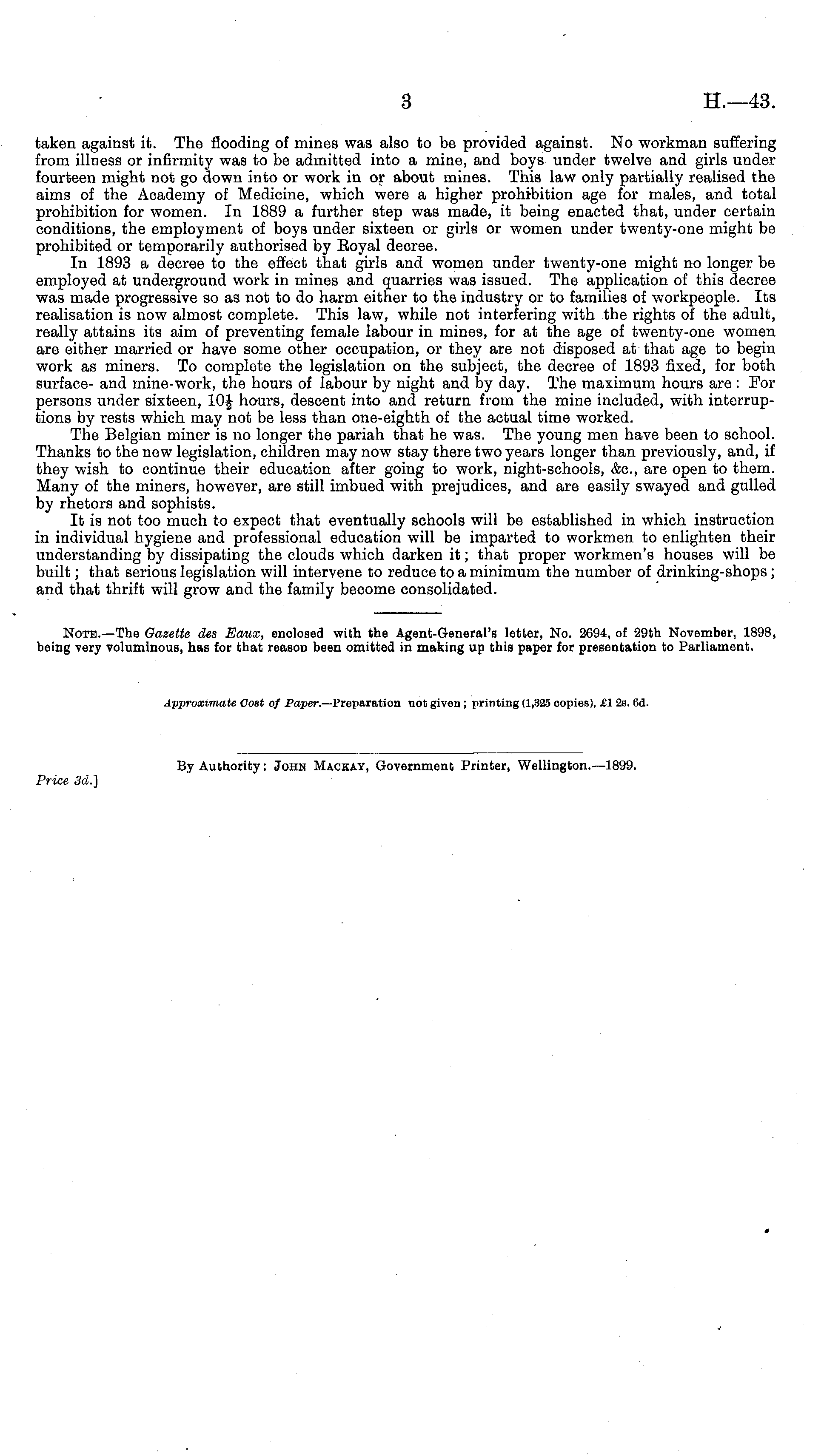 Note.—The Gazette dcs Eaux, enclosed with the Agent-General's letter, No. 2694, of 29th November, 1898, being very voluminous, has for that reason been omitted in making up this paper for presentation to Parliament. Approximate Cost of Paper.— Preparation not given ; printing (1,325 copies), £1 2s. 6d.