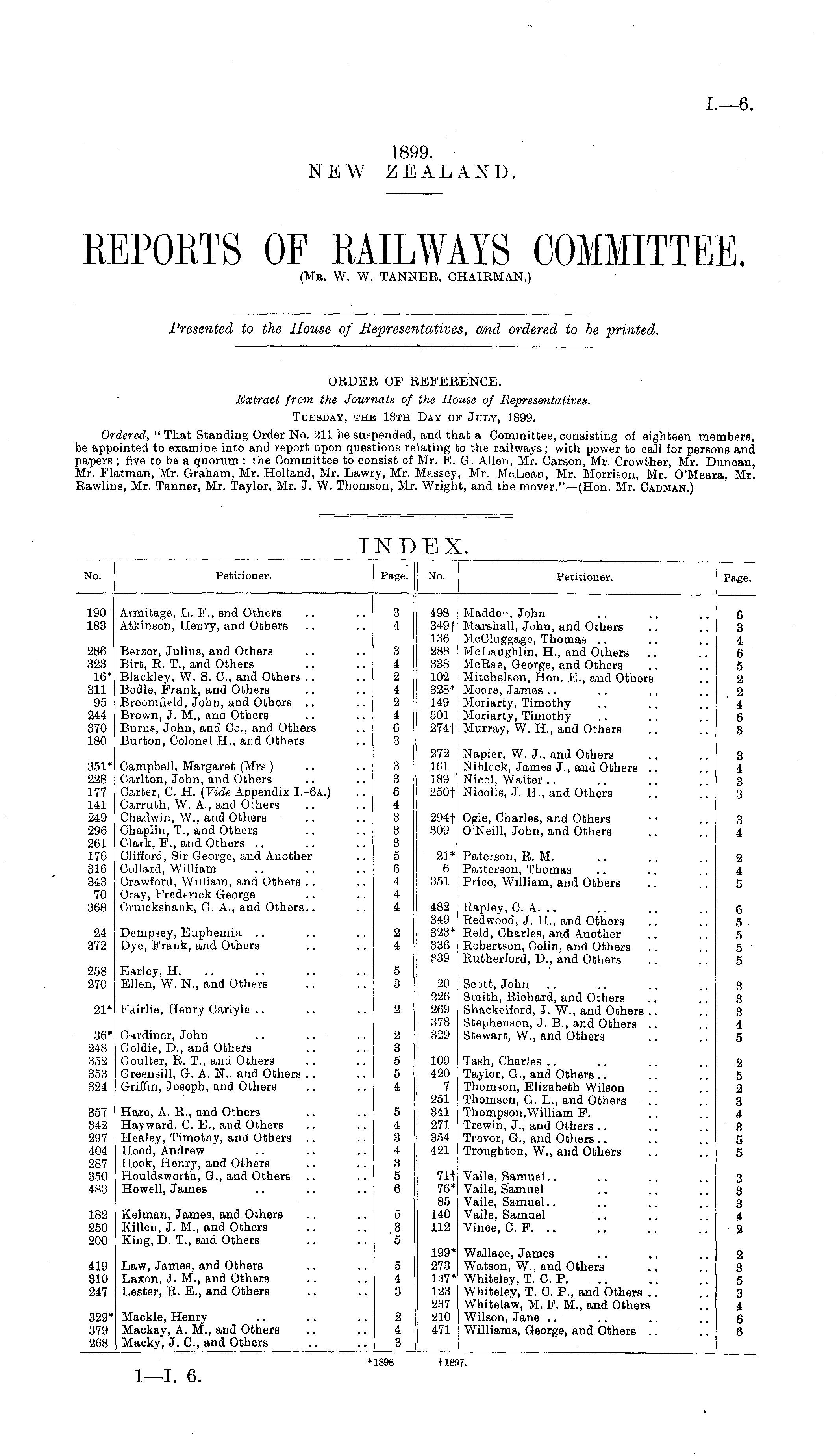 ORDER OP REFERENCE. Extract from the Journals of the House of Representatives. Tuesday, the 18th Day of July, 1899. Ordered, " That Standing Order No. all be suspended, and that a Committee, consisting of eighteen members, be appointed to examine into and report upon questions relating to the railways; with power to call for persons and papers ; five to be a quorum : the Committee to consist of Mr. E. G. Allen, Mr. Carson, Mr. Crowther, Mr. Duncan, Mr. Flatman, Mr. Graham, Mr. Holland, Mr. Lawry, Mr. Massey, Mr. McLean, Mr. Morrison, Mr. O'Meara, Mr. Rawlins, Mr. Tanner, Mr. Taylor, Mr. J. W. Thomson, Mr. Wright, and the mover." —(Hon. Mr. Cadman.)