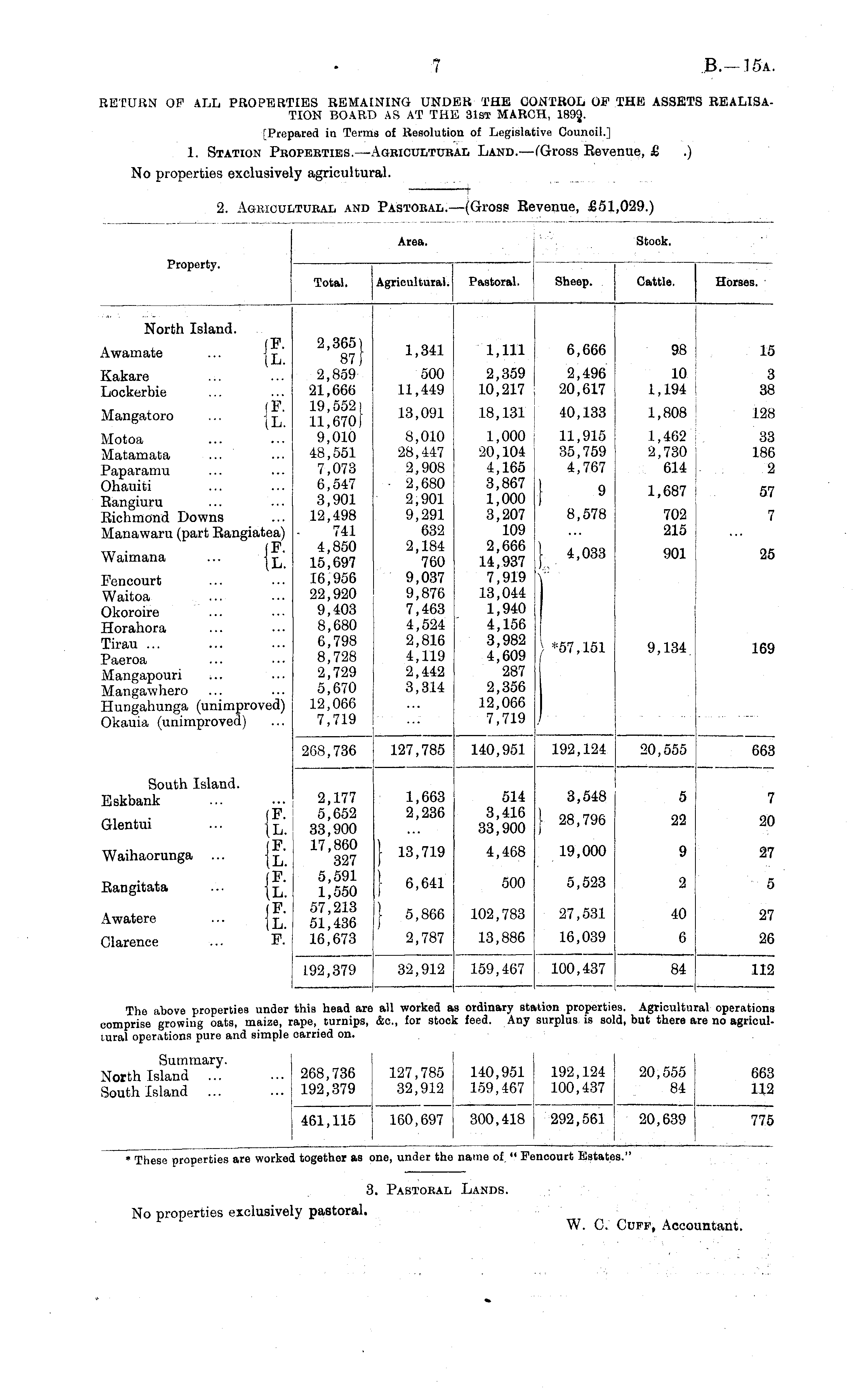 3. Pastoral Lands. : No properties exclusively pastoral. W. C. Cuff, Accountant.