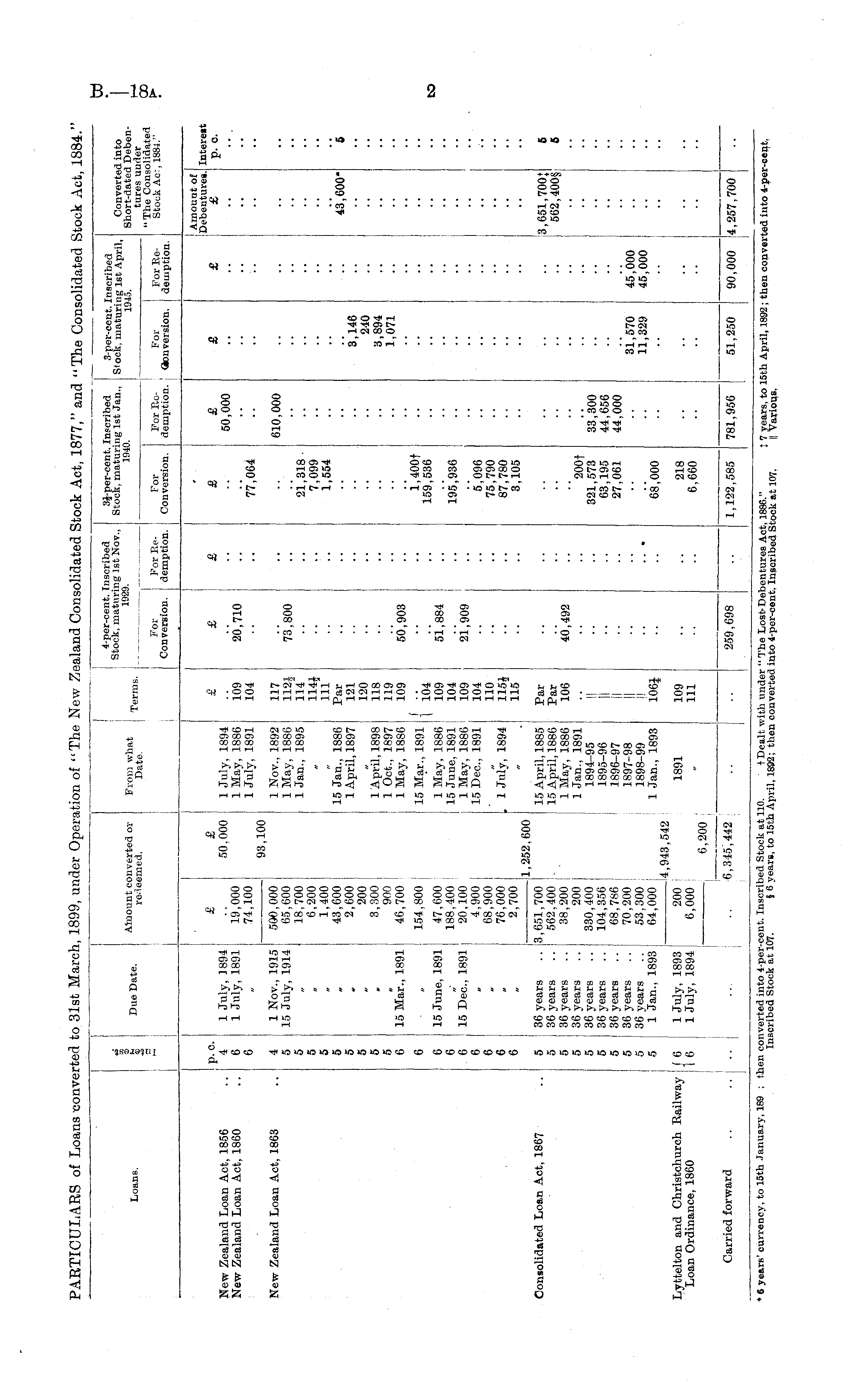 PARTICULARS of Loans converted to 31st March, 1899, under Operation of "The New Zealand Consolidated Stock Act, 1877," and "The Consolidated Stock Act, 1884."