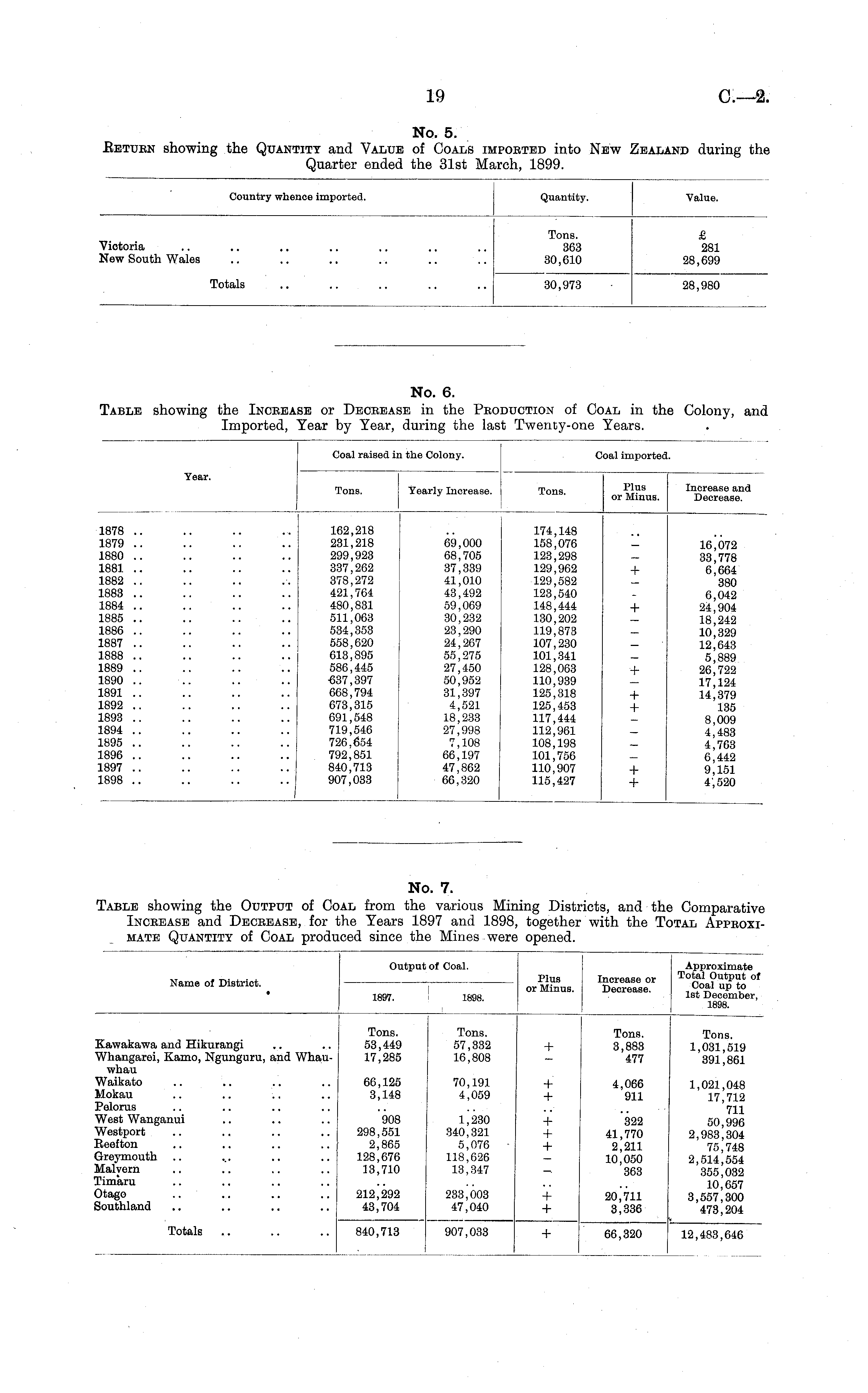 No. 5. Return showing the Quantity and Value of Coals imported into New Zealand during the Quarter ended the 31st March, 1899.
