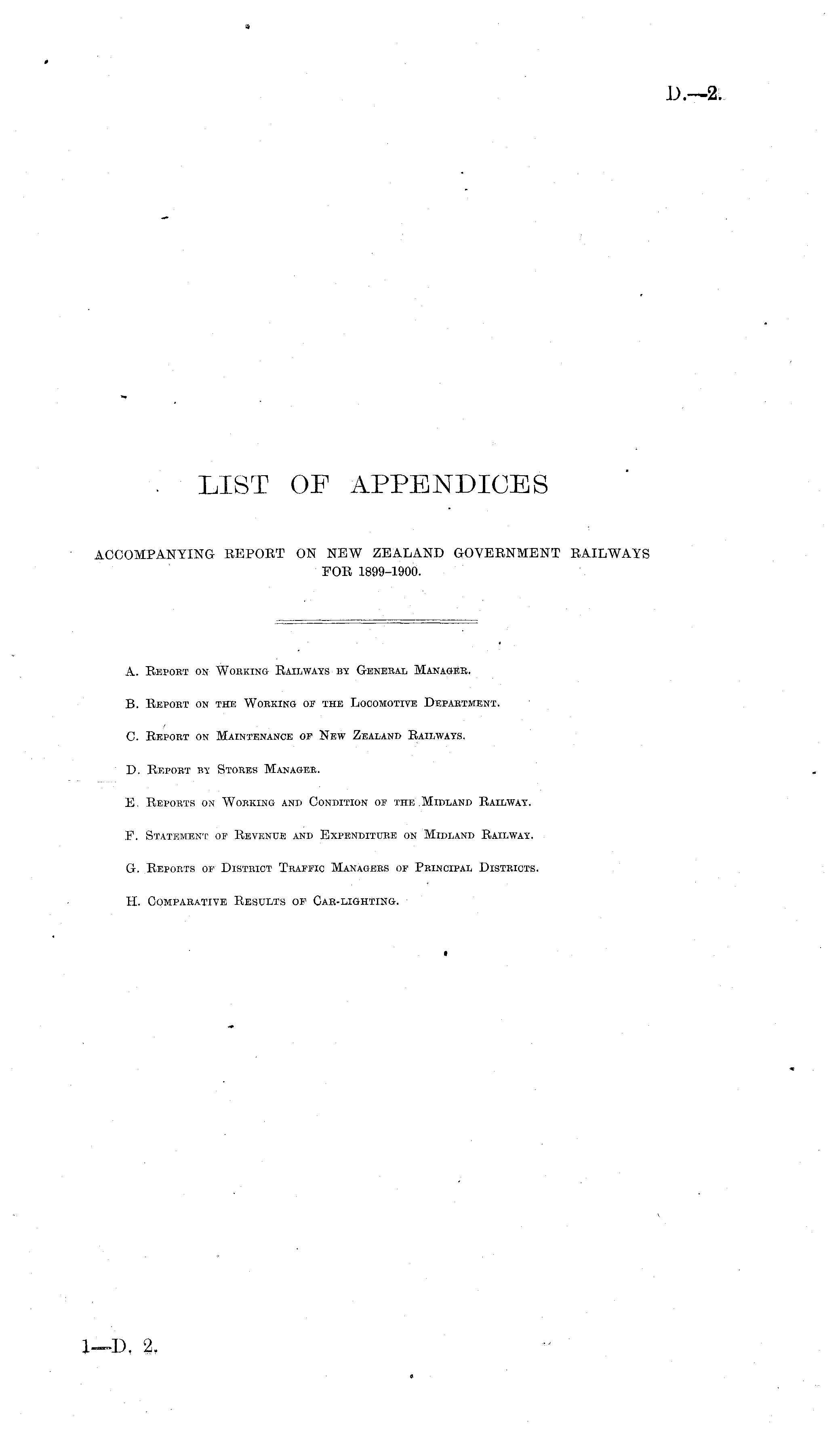 LIST OF APPENDICES ACCOMPANYING REPORT ON NEW ZEALAND GOVERNMENT RAILWAYS FOR 1899-1900.