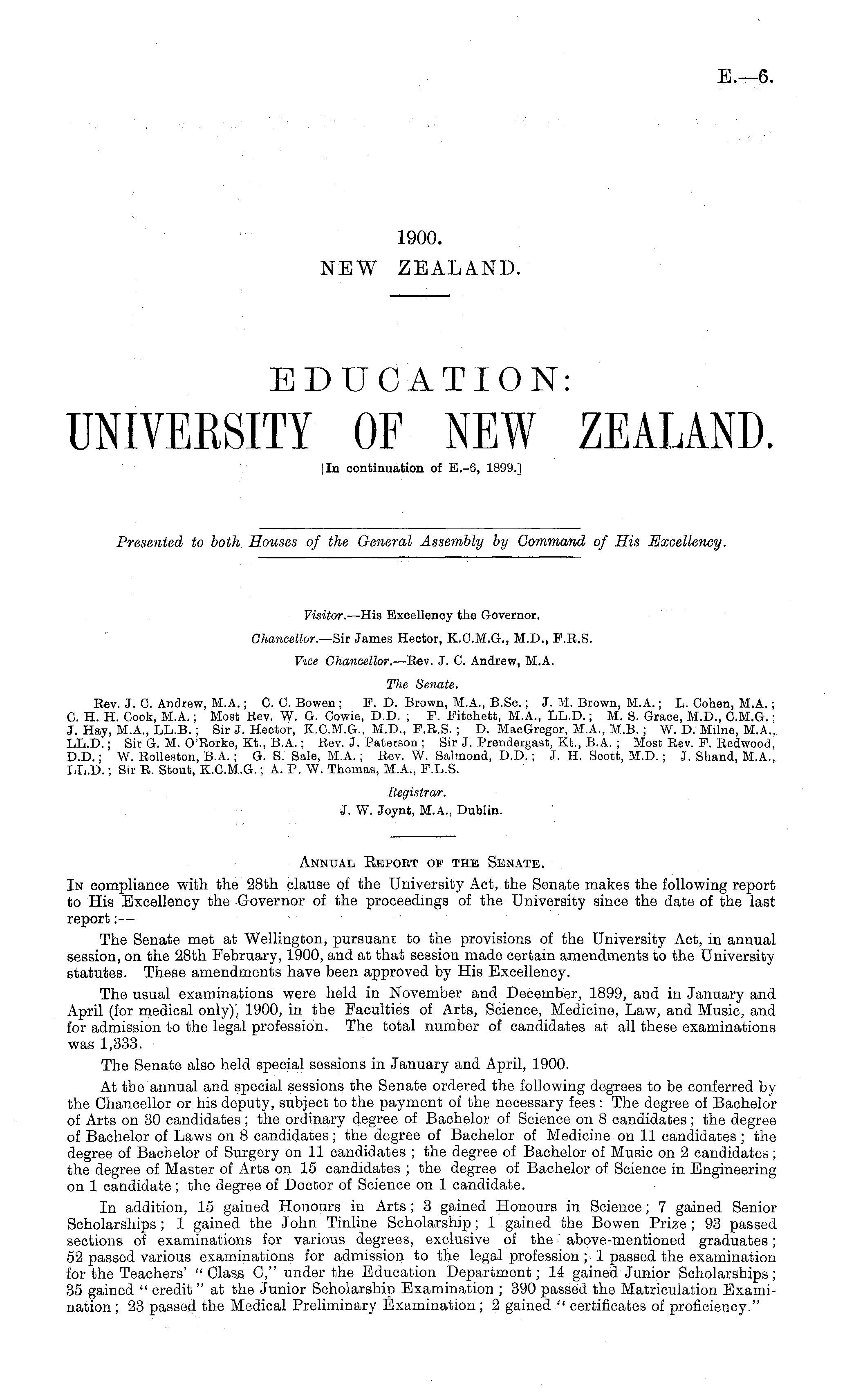 EDUCATION: UNIVERSITY OF NEW ZEALAND. [In continuation of E.-6, 1899.]