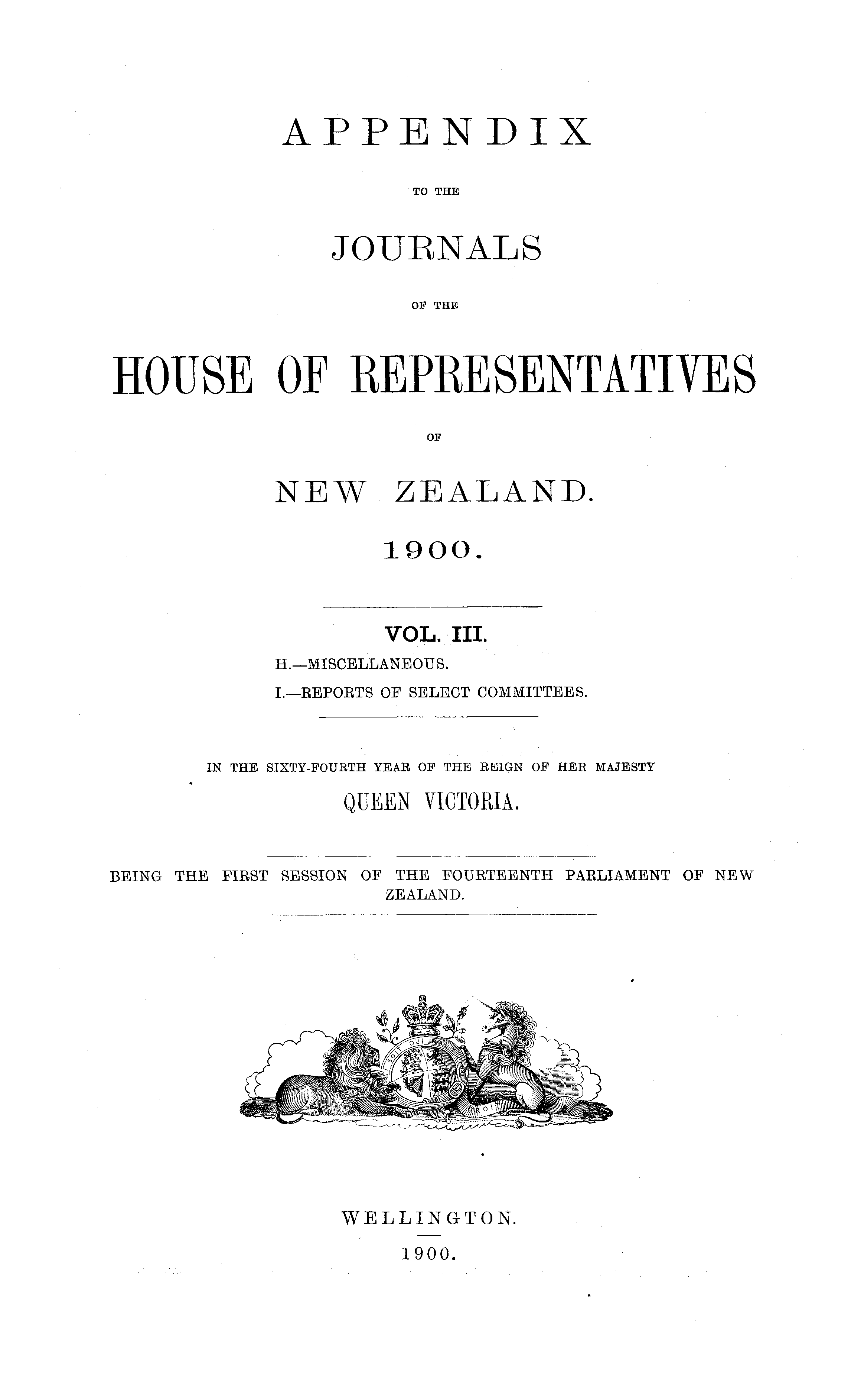 APPENDIX TO THE JOURNALS OF THE HOUSE OF REPRESENTATIVES OF NEW ZEALAND. 1900.