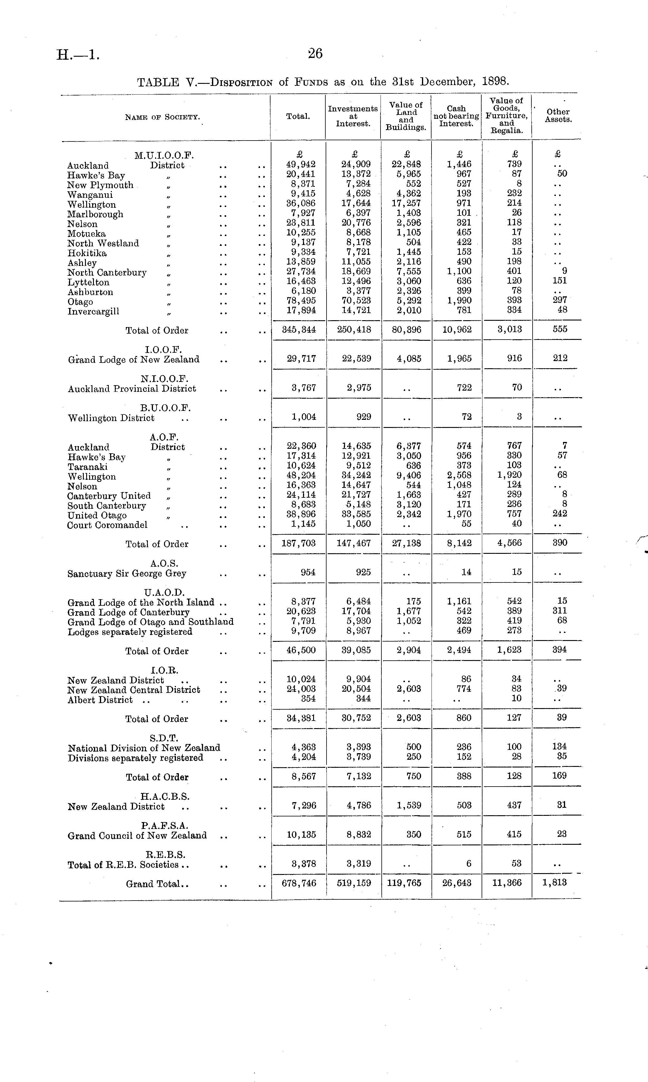 TABLE V. —Disposition of Funds as on the 31st December, 1898.