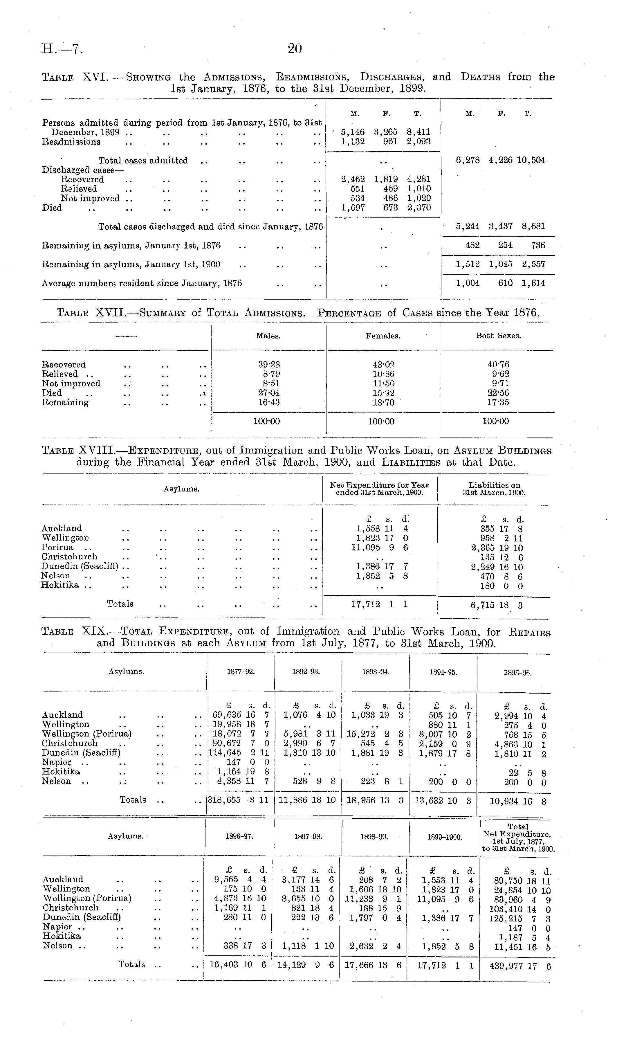 Table XIX.—Total Expenditure, out of Immigration and Public Works Loan, for Repairs and Buildings at each Asylum from 1st July, 1877, to 31st March, 1900.
