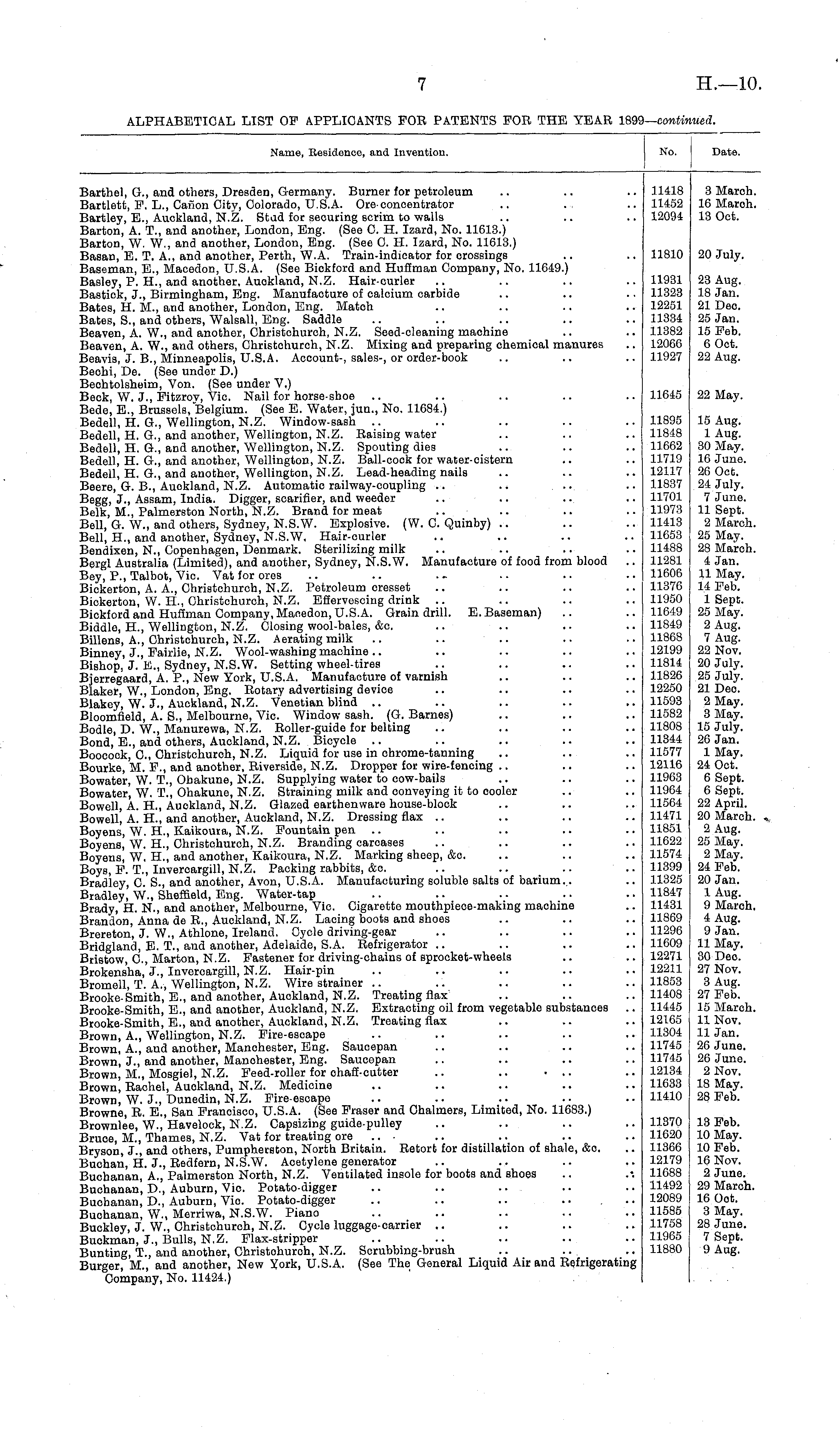 ALPHABETICAL LIST OF APPLICANTS FOR PATENTS FOR THE YEAR 1899— continued.