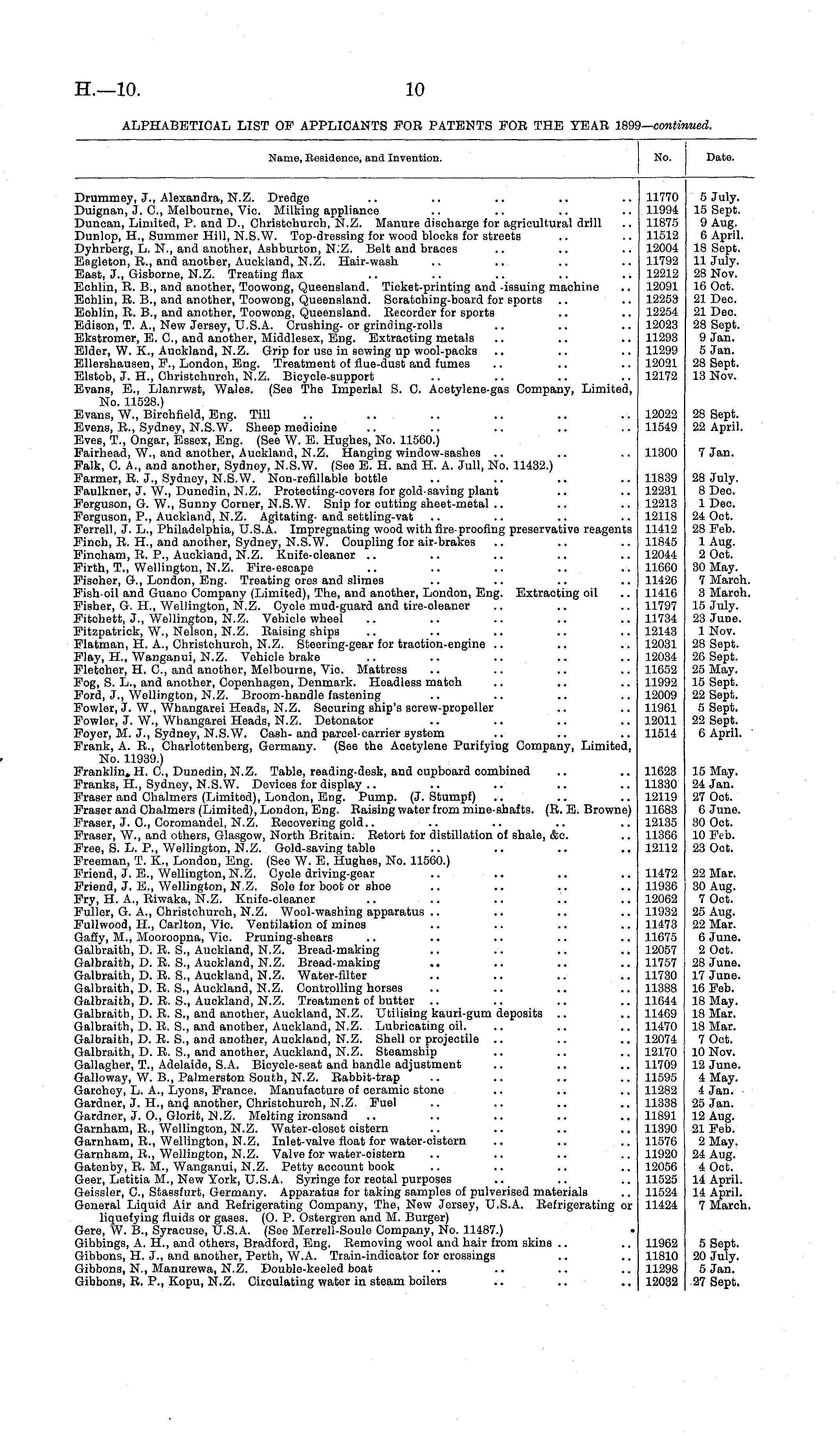 ALPHABETICAL LIST OF APPLICANTS FOR PATENTS FOR THE YEAR 1899— continued.