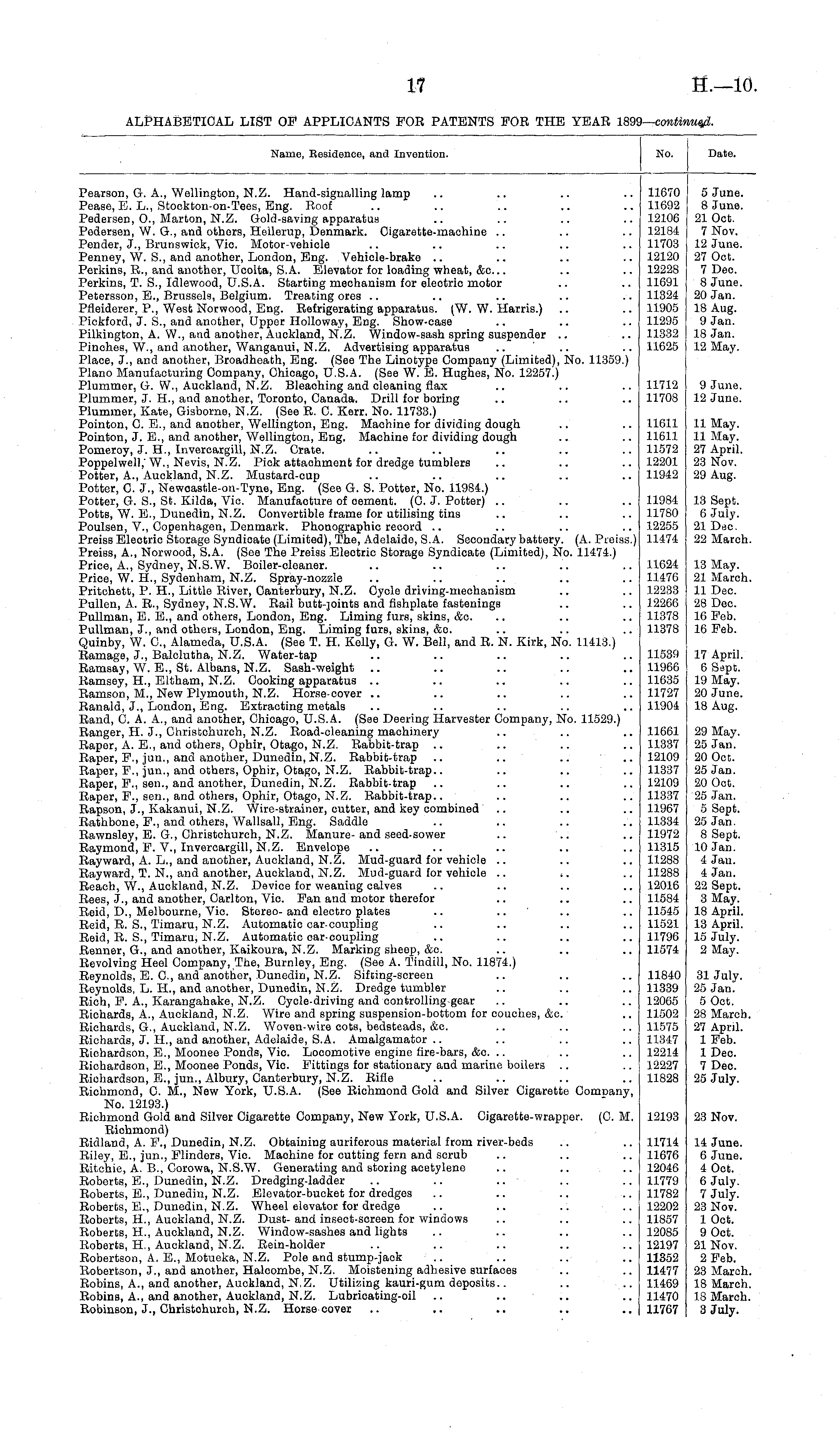 ALPHABETICAL LIST OF APPLICANTS FOR PATENTS FOR THE YEAR 1899— continued.