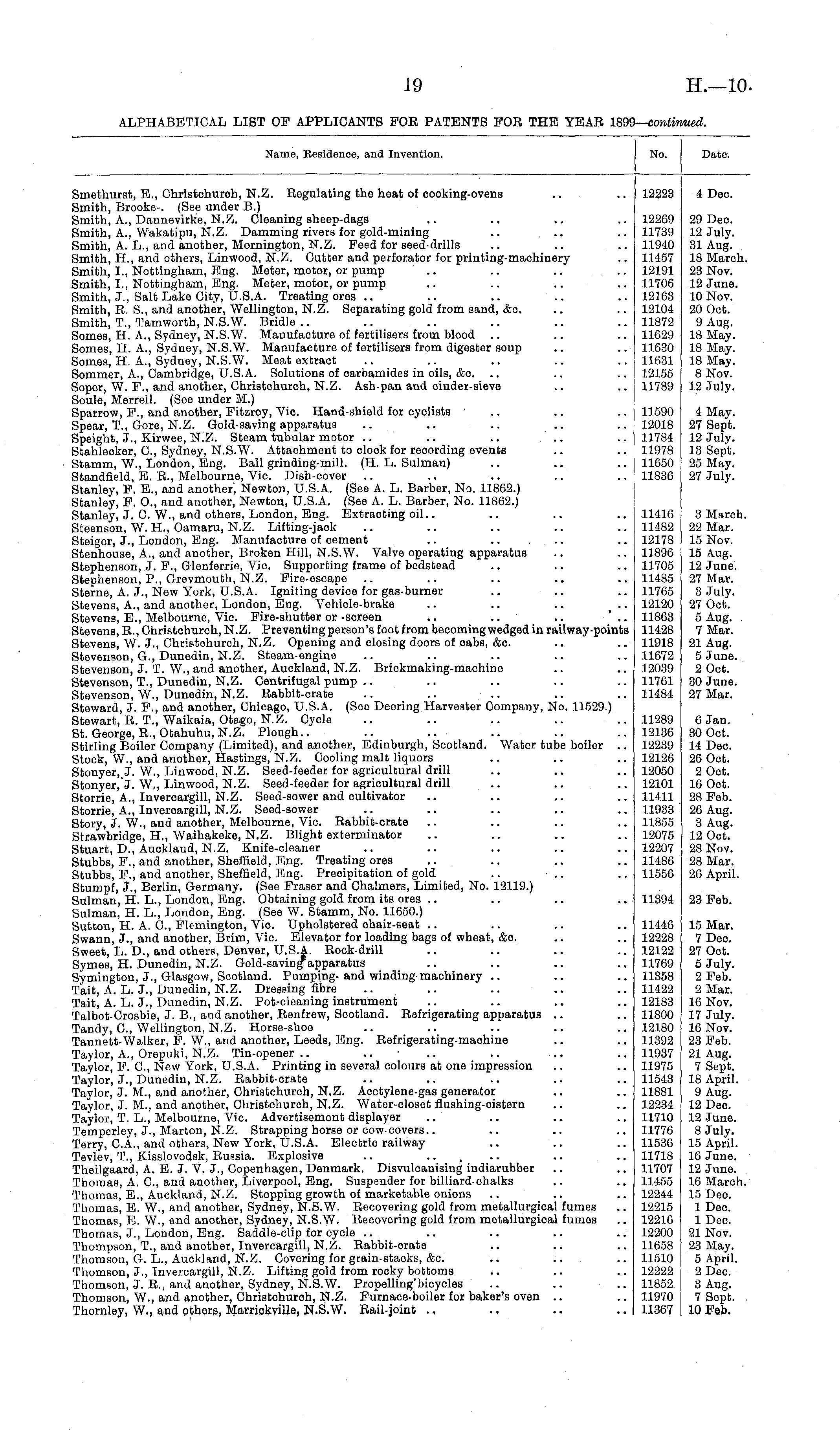 ALPHABETICAL LIST OF APPLICANTS FOR PATENTS FOR THE YEAR 1899— continued.