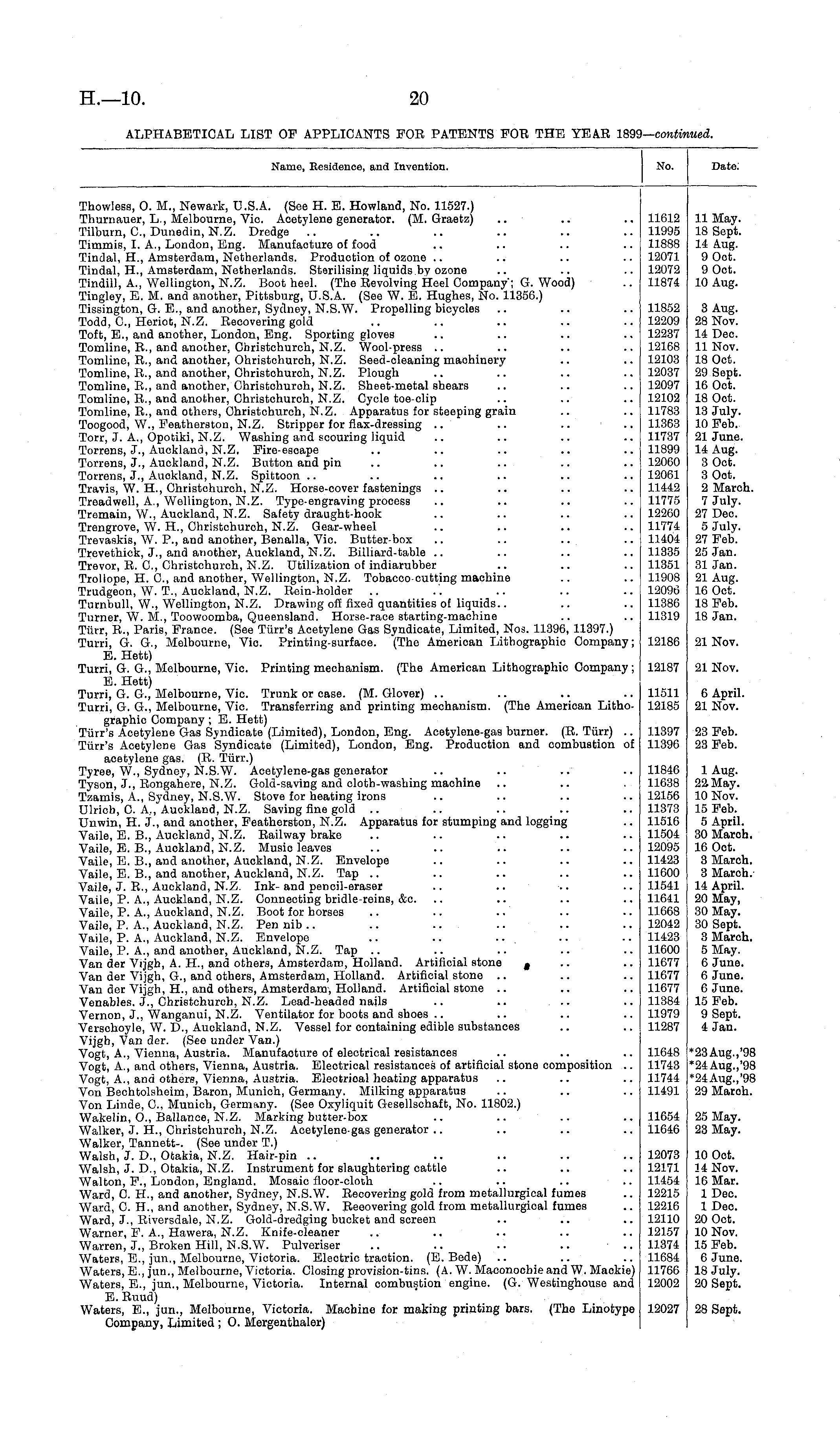 ALPHABETICAL LIST OF APPLICANTS FOR PATENTS FOR THE YEAR 1899— continued.