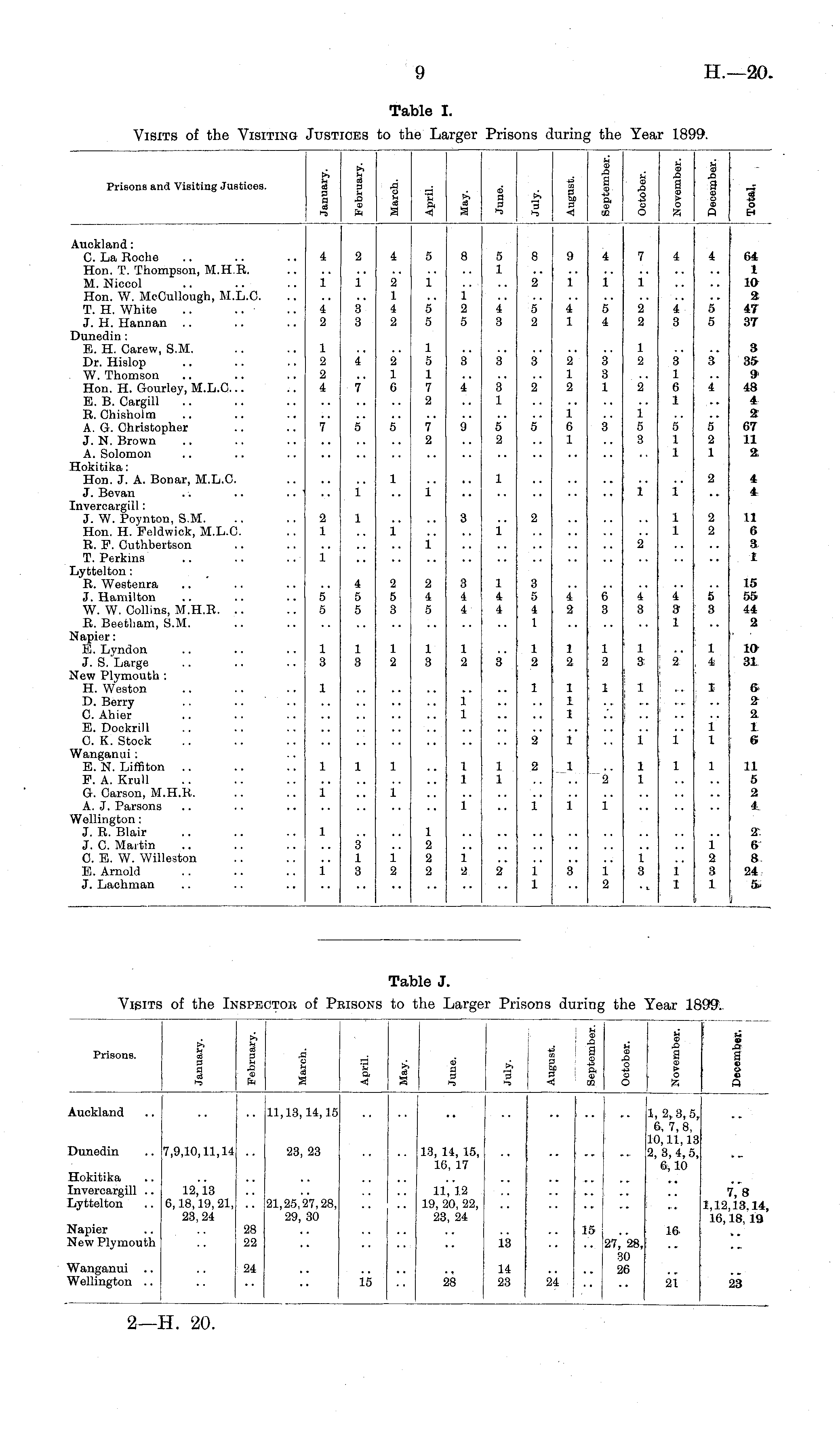 Table J. Visits of the Inspector of Prisons to the Larger Prisons during the Year 1899.